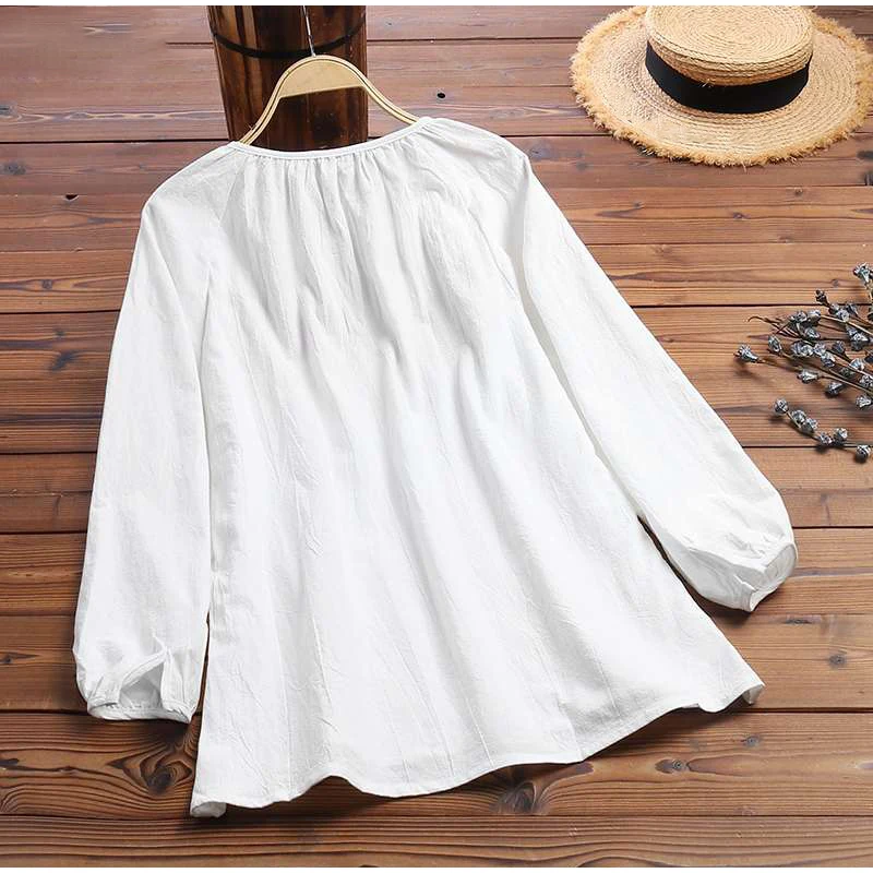 Женская винтажная рубашка с цветочной вышивкой, весенне-осенняя блузка с v-образным вырезом и длинным рукавом, женские топы, блузки для вечеринок, женские блузы большого размера