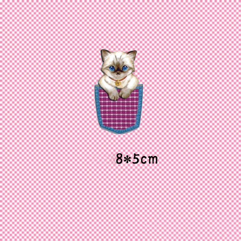 Модная одежда из ПВХ с заплатками футболка с принтом в виде кота с карманами и теплопередачей наклейки для одежды с утюгом для девочек