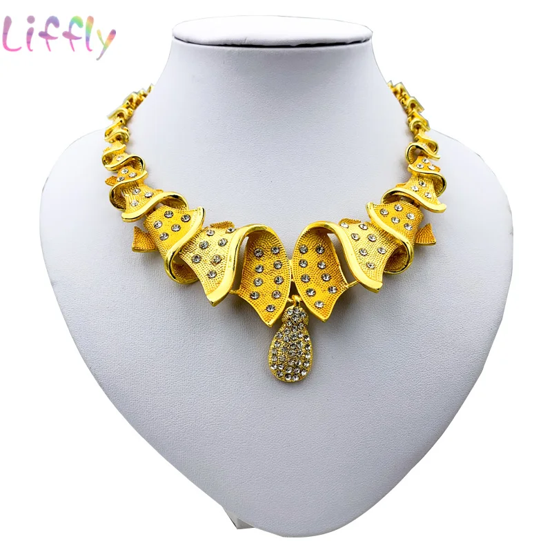 Liffly Nigerian Jewelry Sets for Women Crystal Necklace Earrings Bracelet Ring African Wedding Bridal Jewelry Sets
