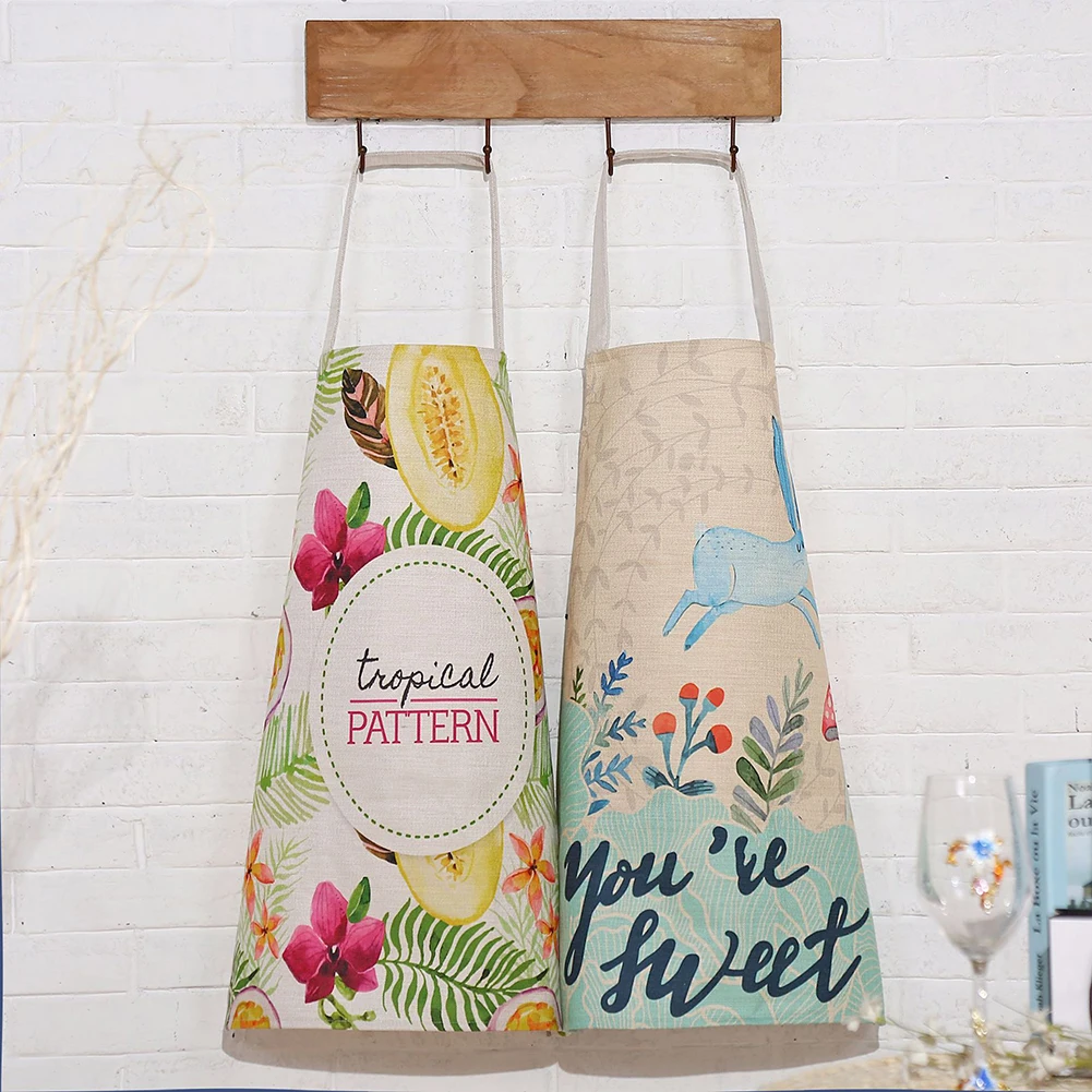 Кухонные фартуки, модные фартуки с цветочным принтом пиона и буквенным принтом, антипылевой фартук для приготовления пищи, поясные фартуки, принадлежности для барбекю, кухонные принадлежности для чистки