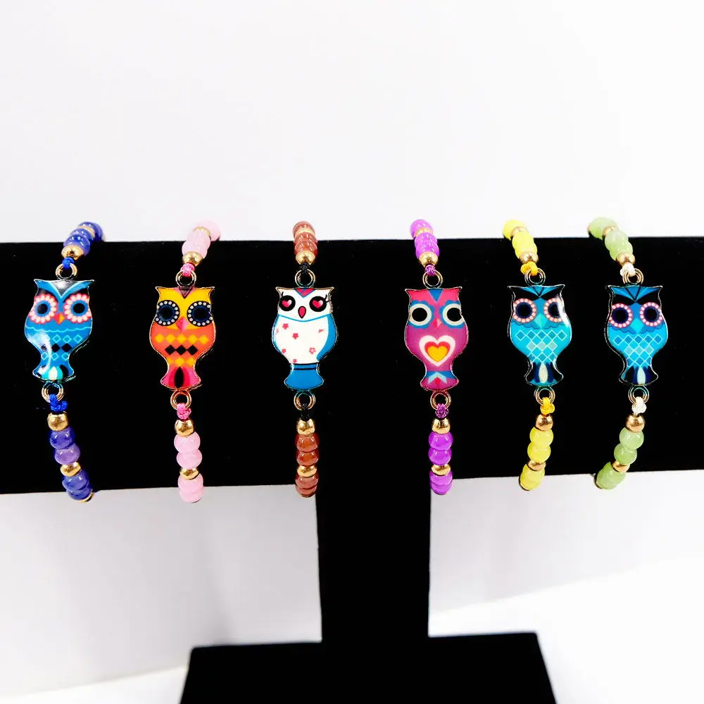 Ручной работы плетеный веревочный браслет-цепочка Сова амулеты Браслеты с бусинами из кристаллов для женщин модные ювелирные изделия
