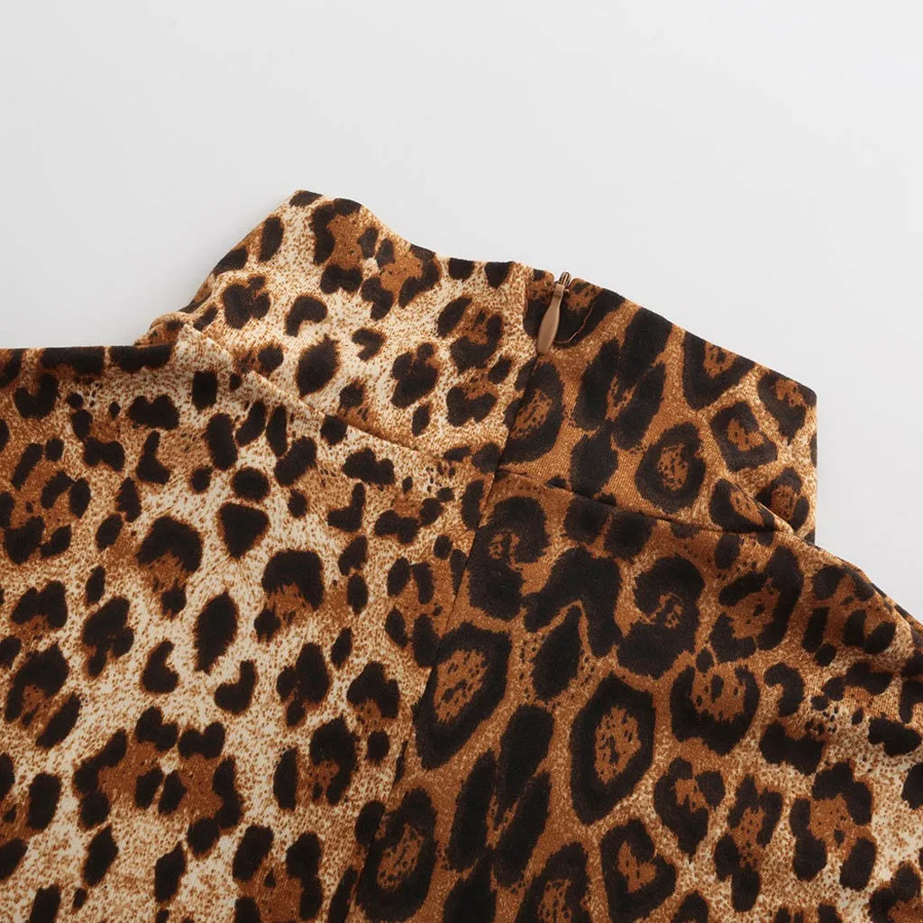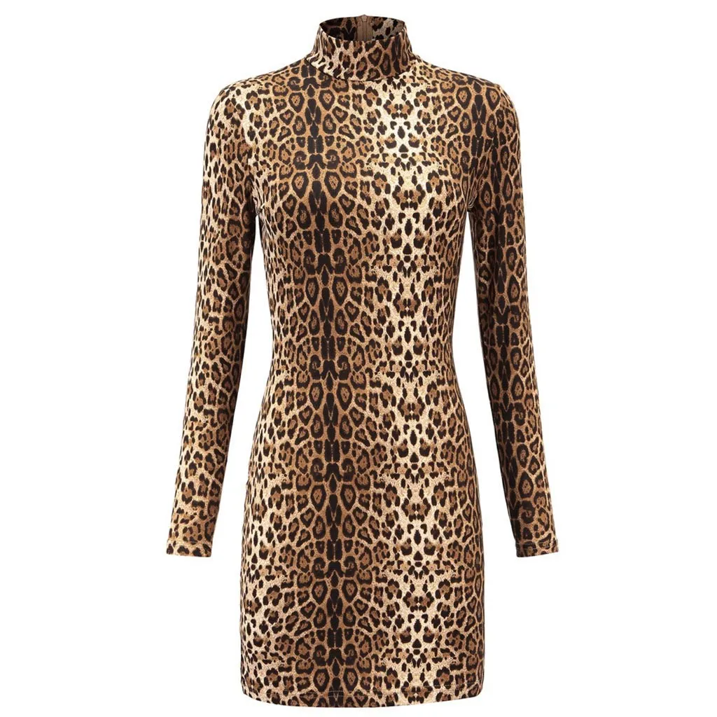 Модные женские сексуальные водолазки с длинным рукавом с леопардовым принтом облегающее мини Повседневное платье