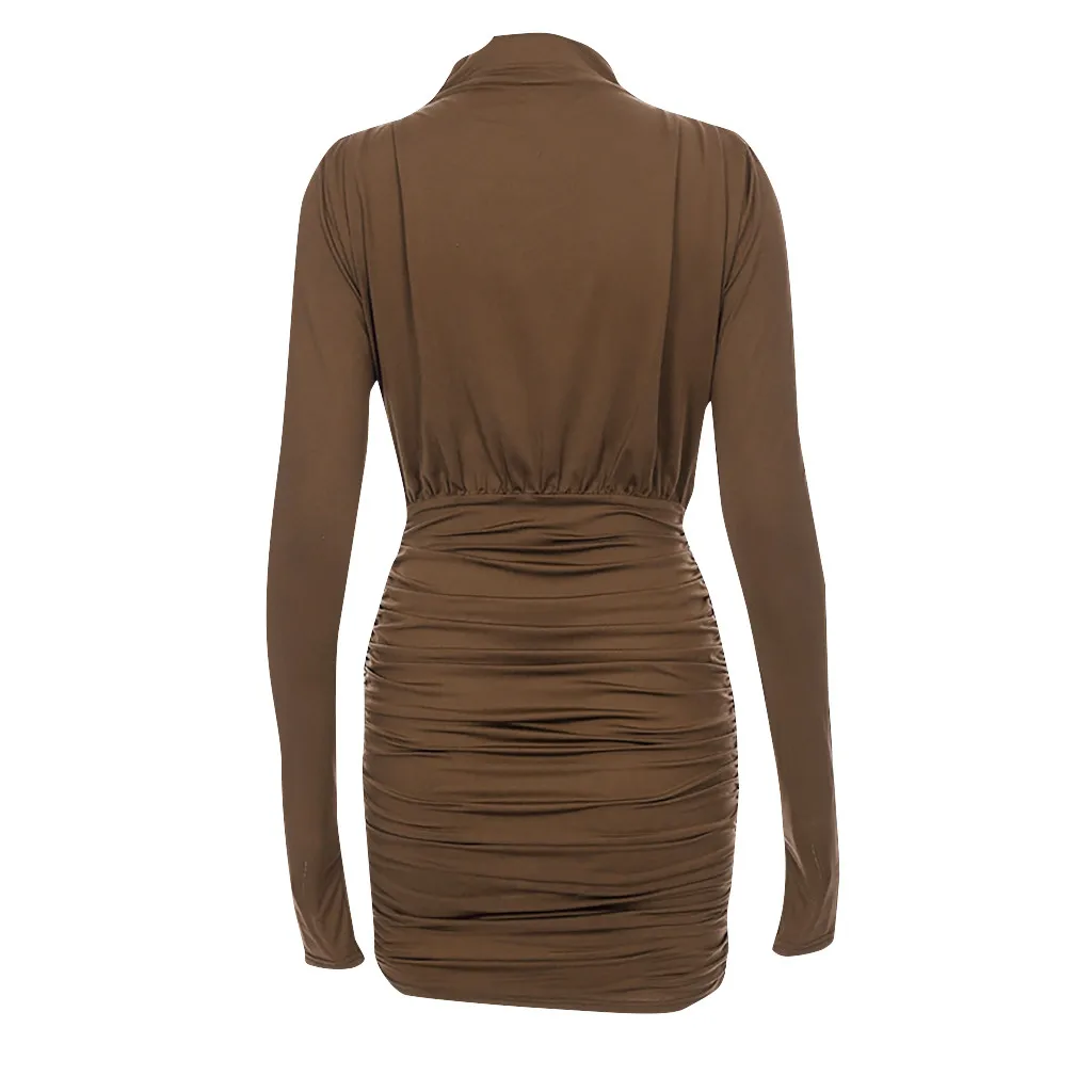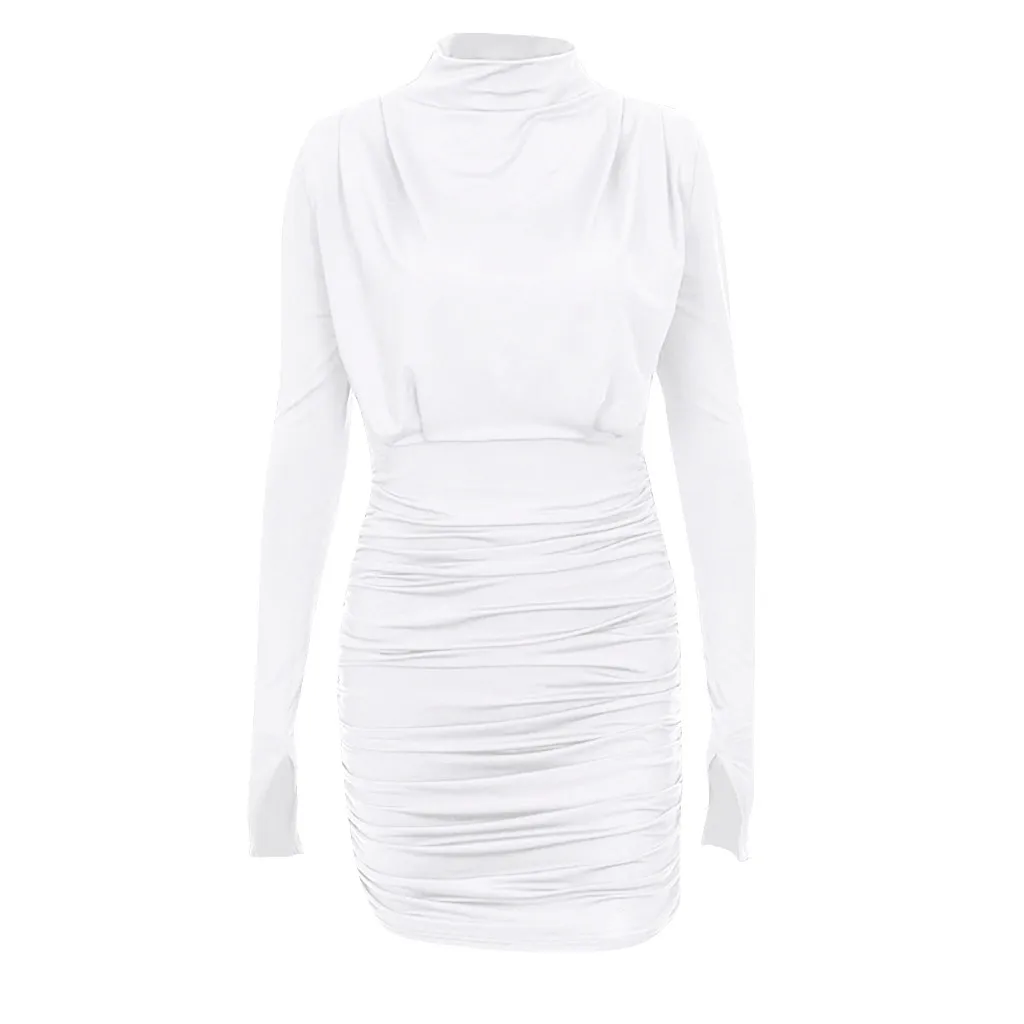 Vestidos mujer 2019, однотонное облегающее мини-платье со стоячим воротником, высокой талией и длинным рукавом, сексуальное облегающее платье, элегантное осенне-зимнее платье