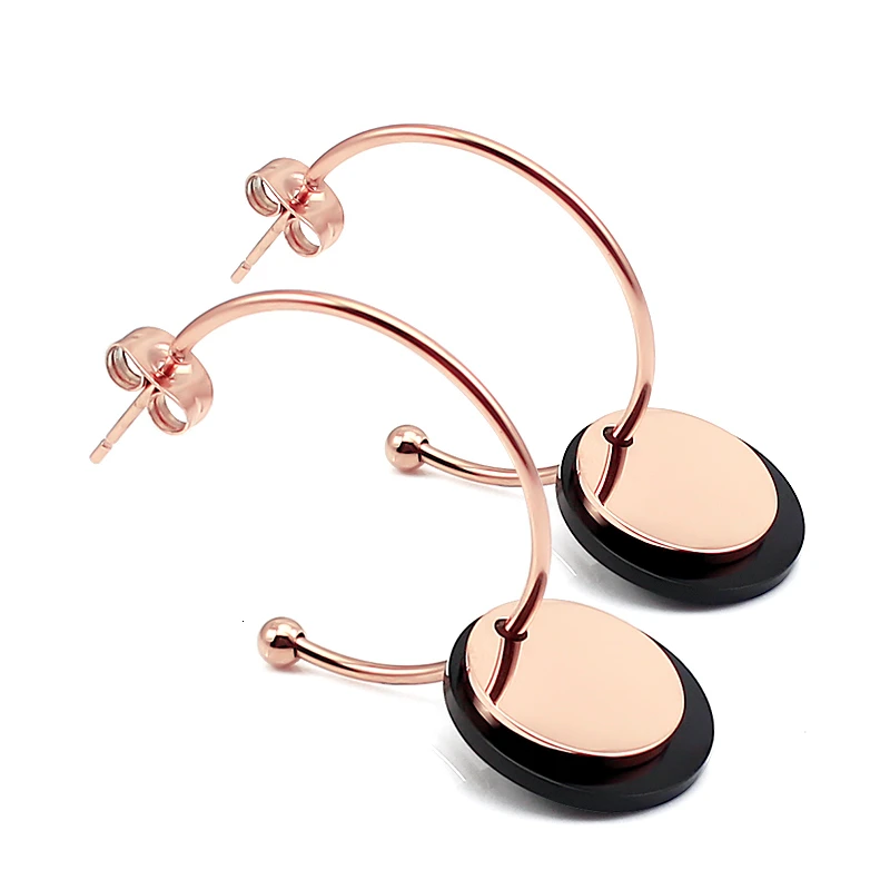 Хирургические стальные серьги с половиной обруча, розовое золото, черный цвет, двойные круглые очаровательные серьги-гвоздики для женщин