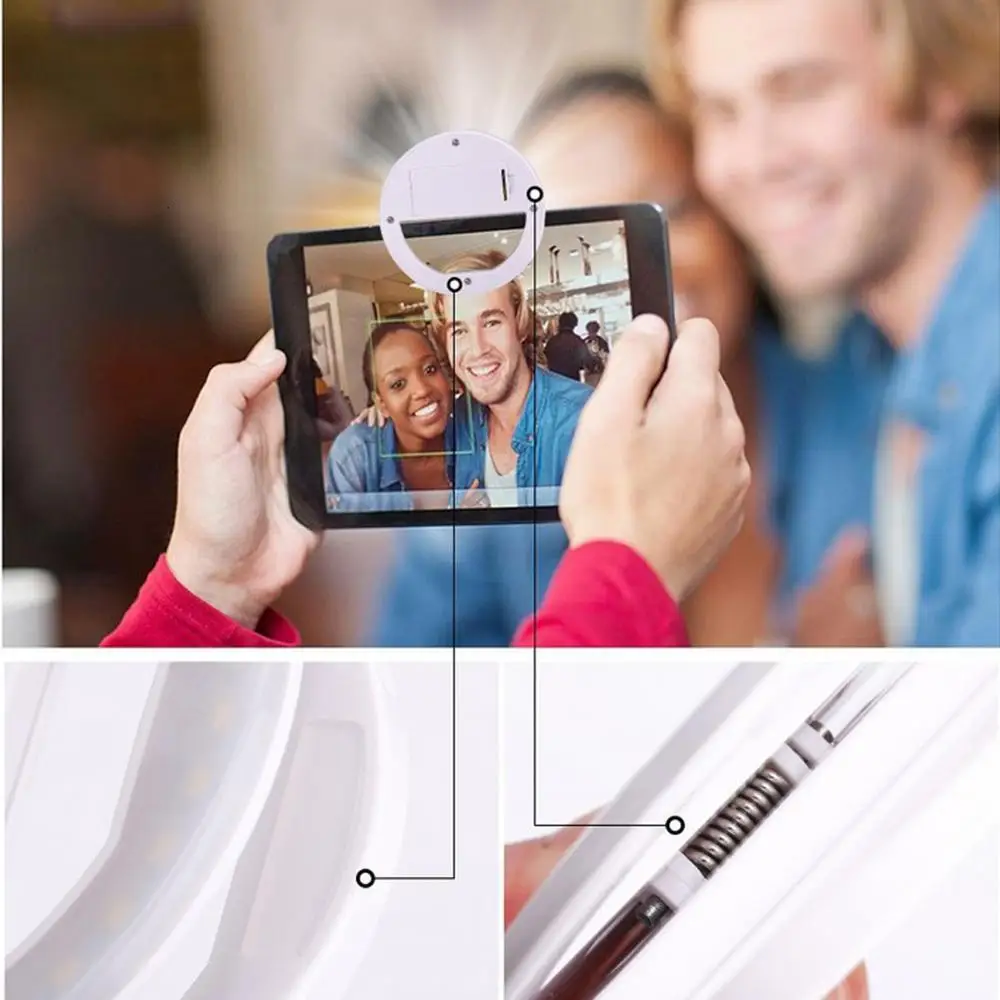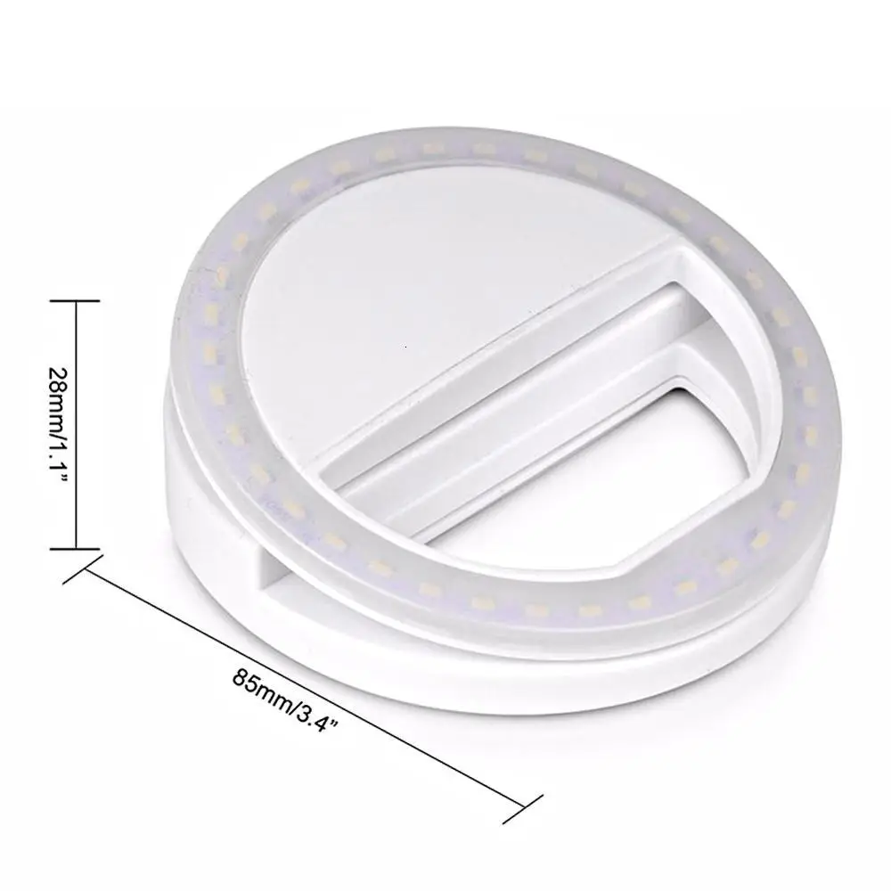 Product size: 85*28mm Light source: LED light source Lamp power: 3W Input voltage: 5V/1A Product switch: button dimming Applicable models: Applicable mobile phones range from 5-15mm thickness Three-level dimming, at least one thousand shots, this mobile phone is universal, can be used to clip mobile phones, computers, suitable for night light, self-time fill light, shooting small jewelry This is a special ring clip light for mobile phones: it is mainly for self-timer use, but the ring light itself provides full and average light, which seems to be not limited to self-timer use.