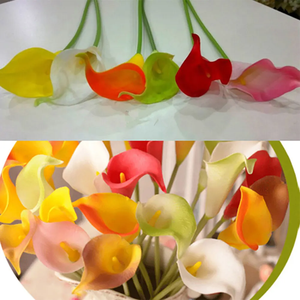 Product Description: Name: Calla flower Material: PU material Type : Bouquet Variety : Horseshoe Size: total length of about 38cm, stem length of about 29cm Features: The leaves are all made by simulated hand-feeling process The whole is clearly visible Super-simulation effect The flower rod is made of environmentally friendly glue Package Included: 1 Pcs Calla Flower Note: Please understand, due to some factors, such as the different monitors and the different light circumstances, the colors of the real items will be a little different to the items in the pictures. Please allow slight (±2cm)manual measurement deviation for the data