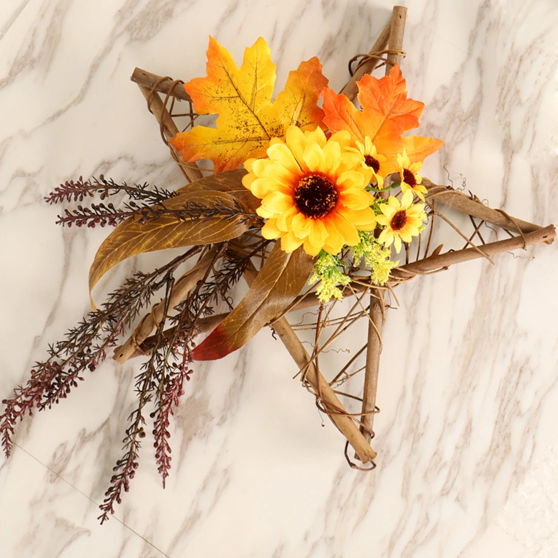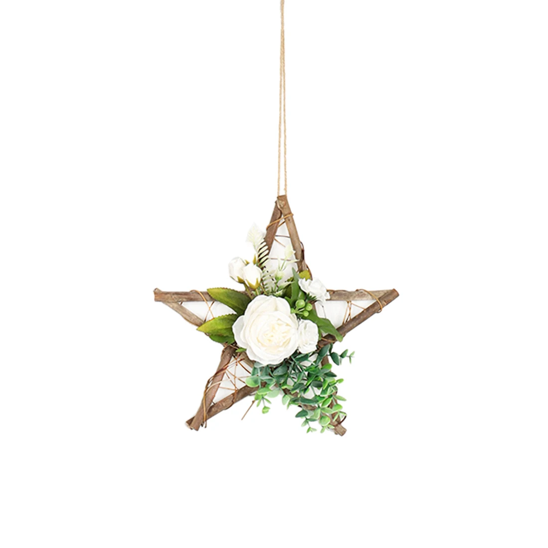 Деревянный венок в форме звезды, искусственный цветок, подвесное украшение для двери, украшение для вечеринки, аксессуары для дома, Осенний пейзаж/зеленый цвет