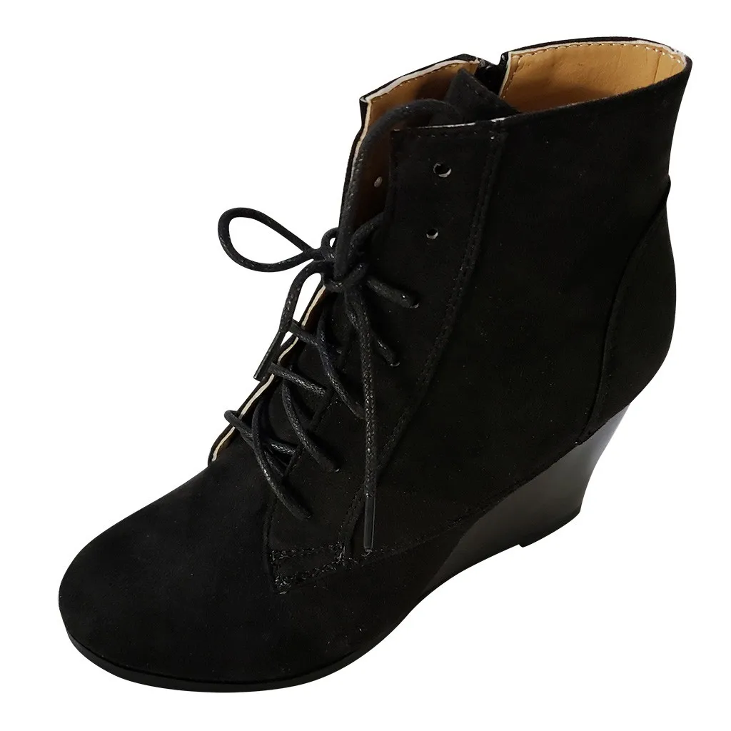 Однотонные Полуботинки на танкетке со шнуровкой и молнией для девочек; ботинки
