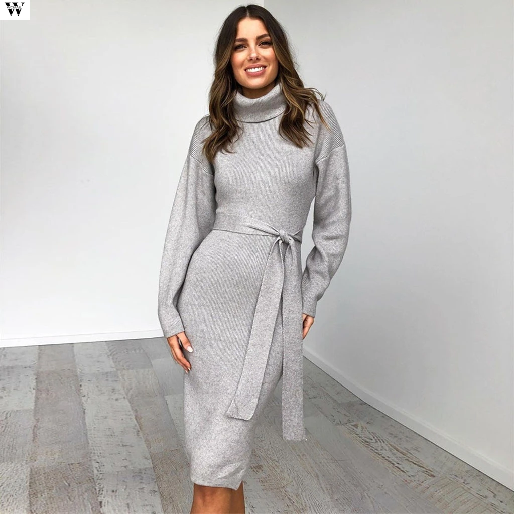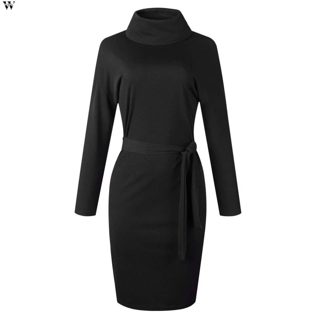 Женский Высокий воротник с длинным рукавом свитер пуловер платье рубашки Топ Блузка