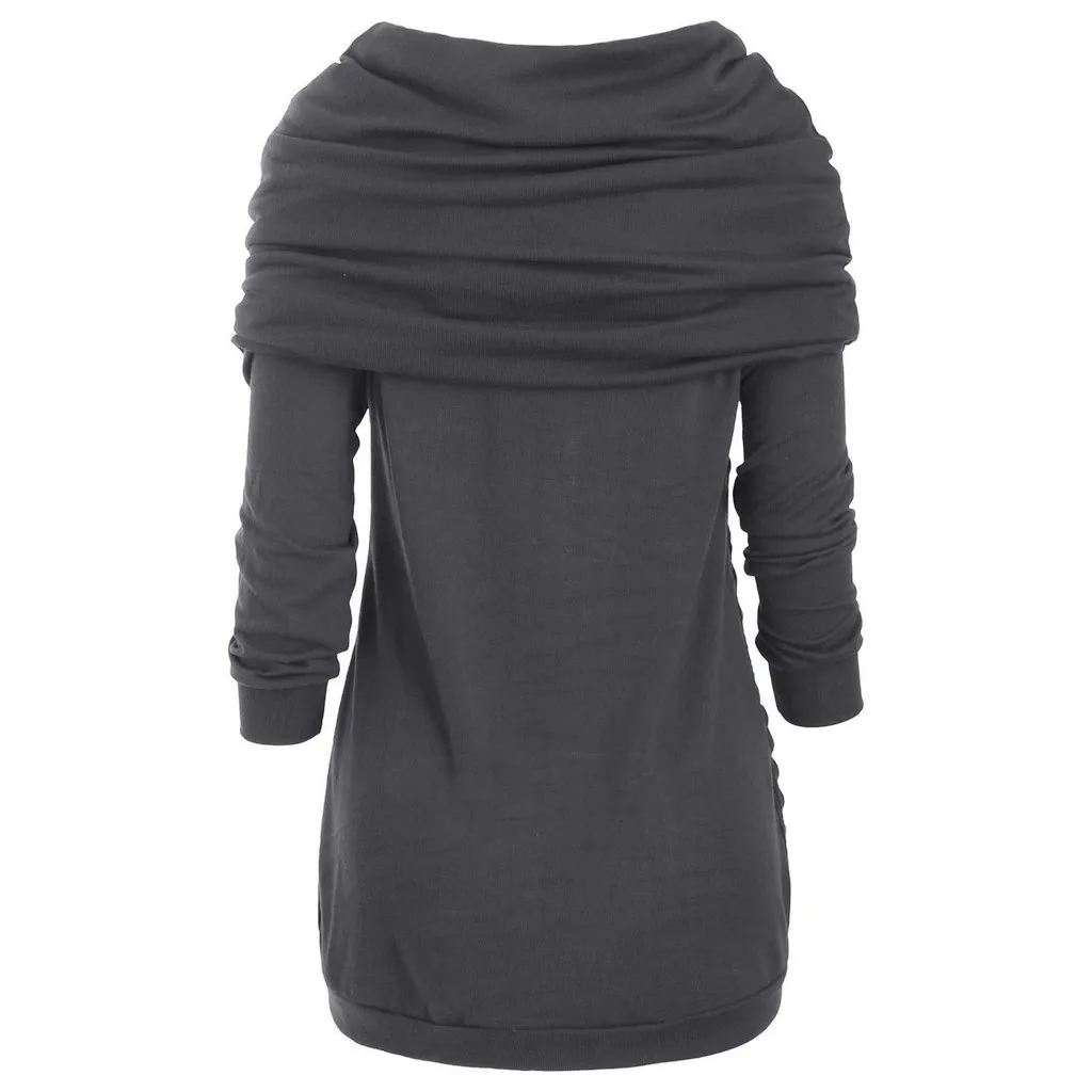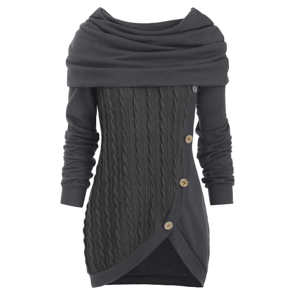 Женская однотонная пуговица большого размераВоротник со сборкамиНеобычный вязаный свитер с капюшоном
