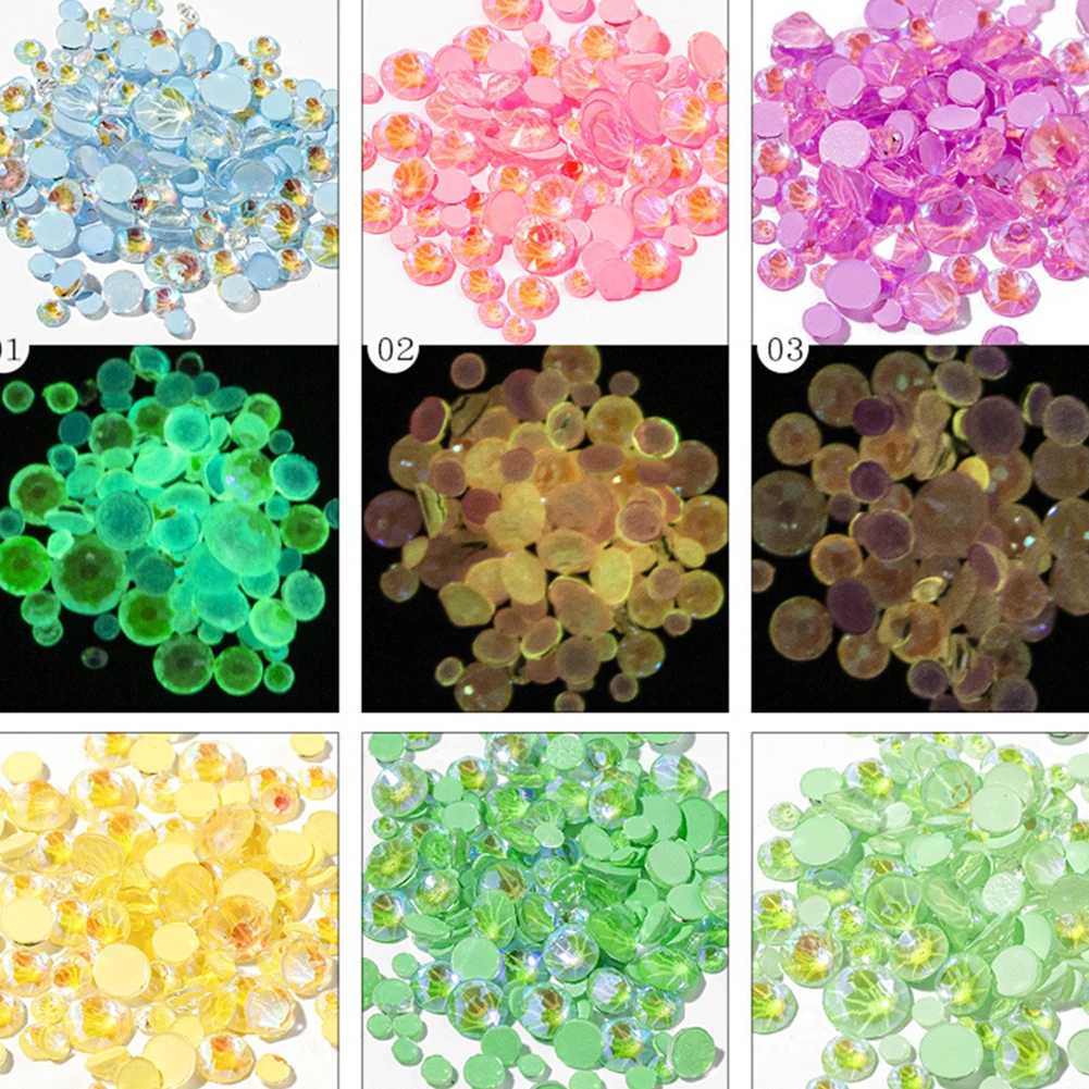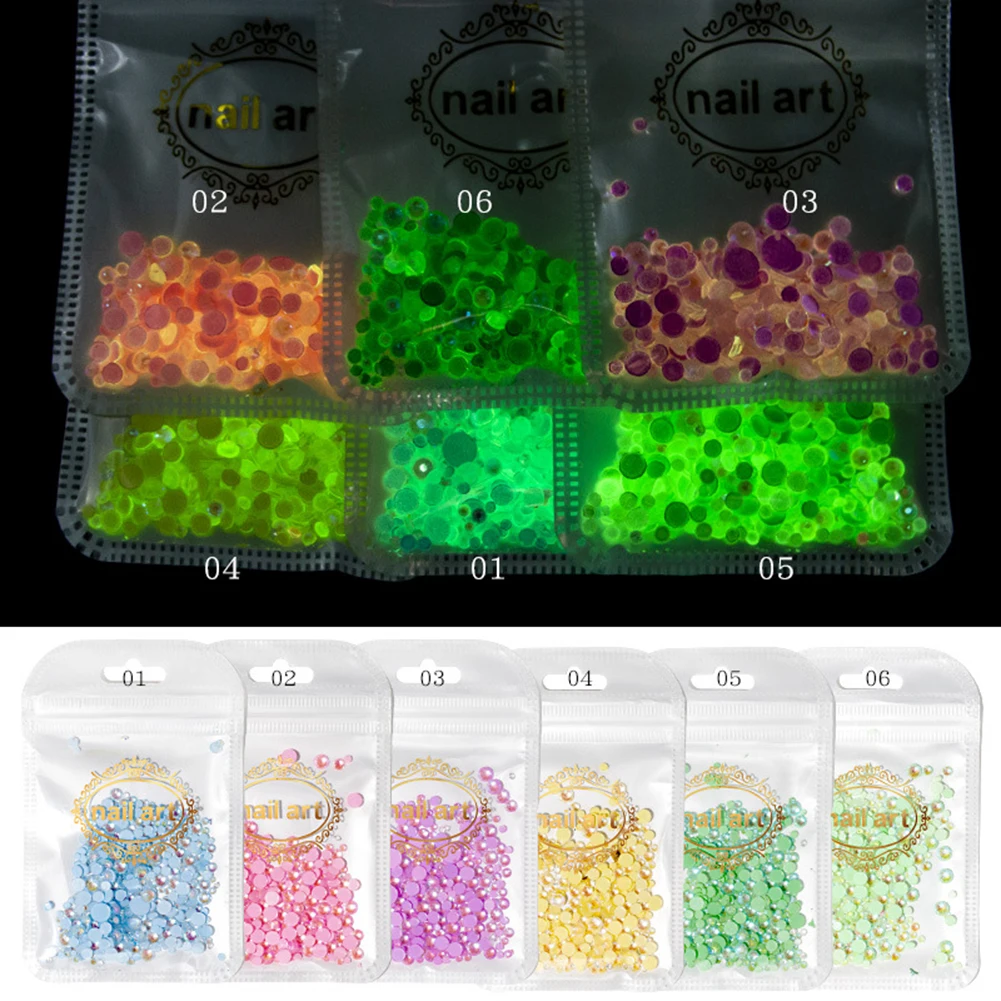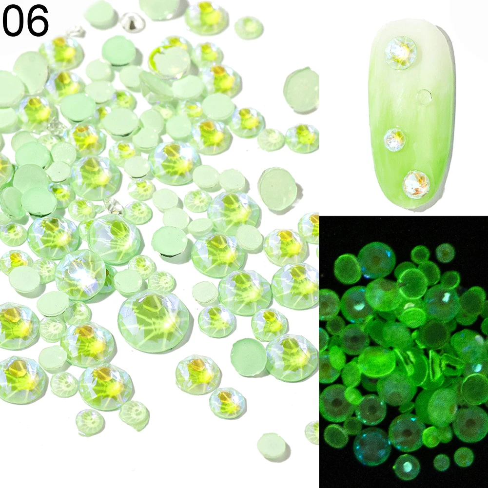 6 цветов DIY 3D блеск круглые плоские стразы светящиеся украшения Маникюр Декор