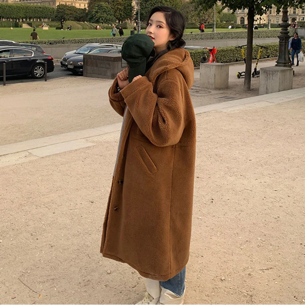 Женское теплое пальто с капюшоном из овечьей кожи
