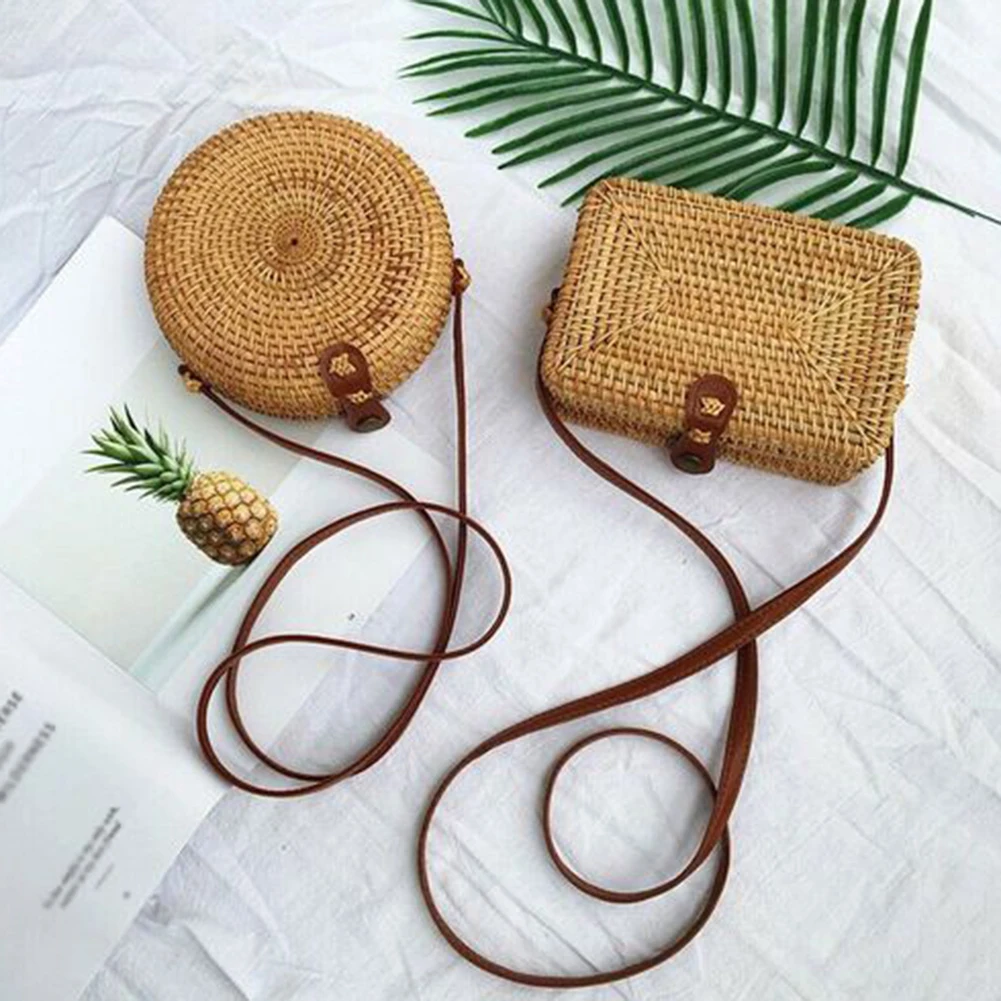 波西米亚女士圆形长方形手工草编斜挎包单肩包沙滩袋