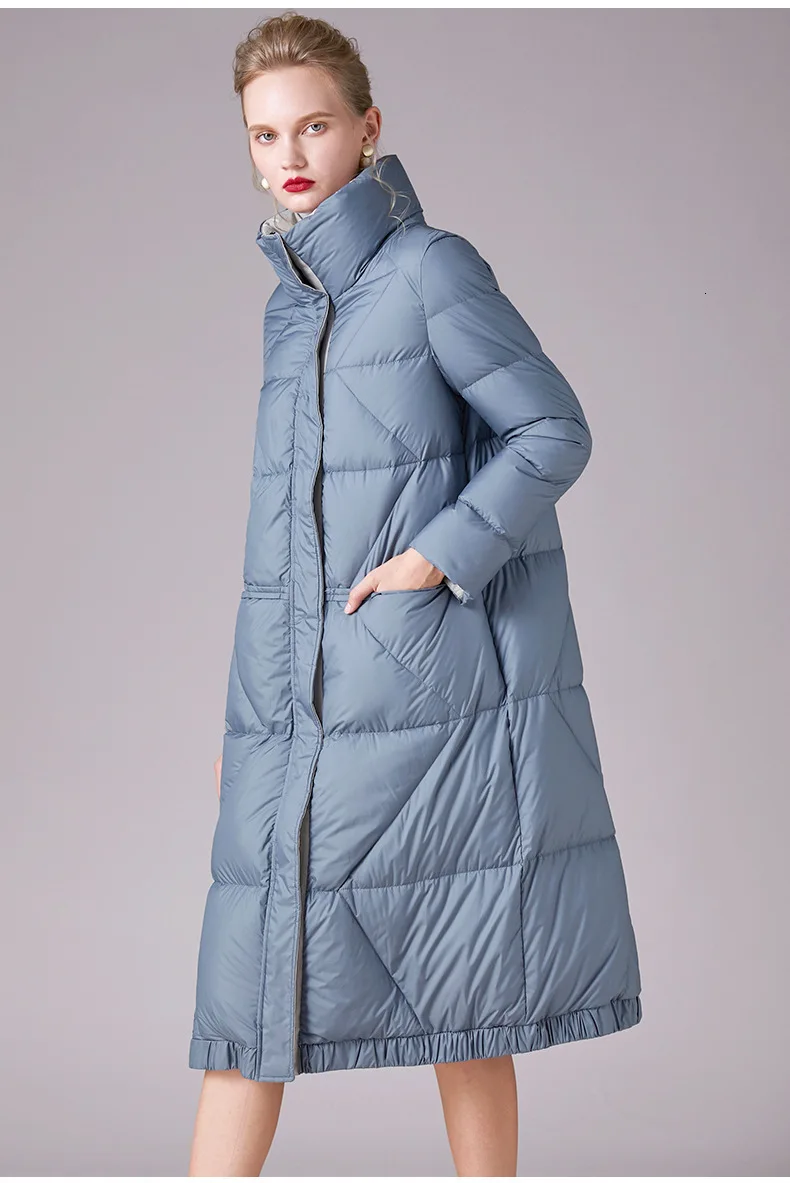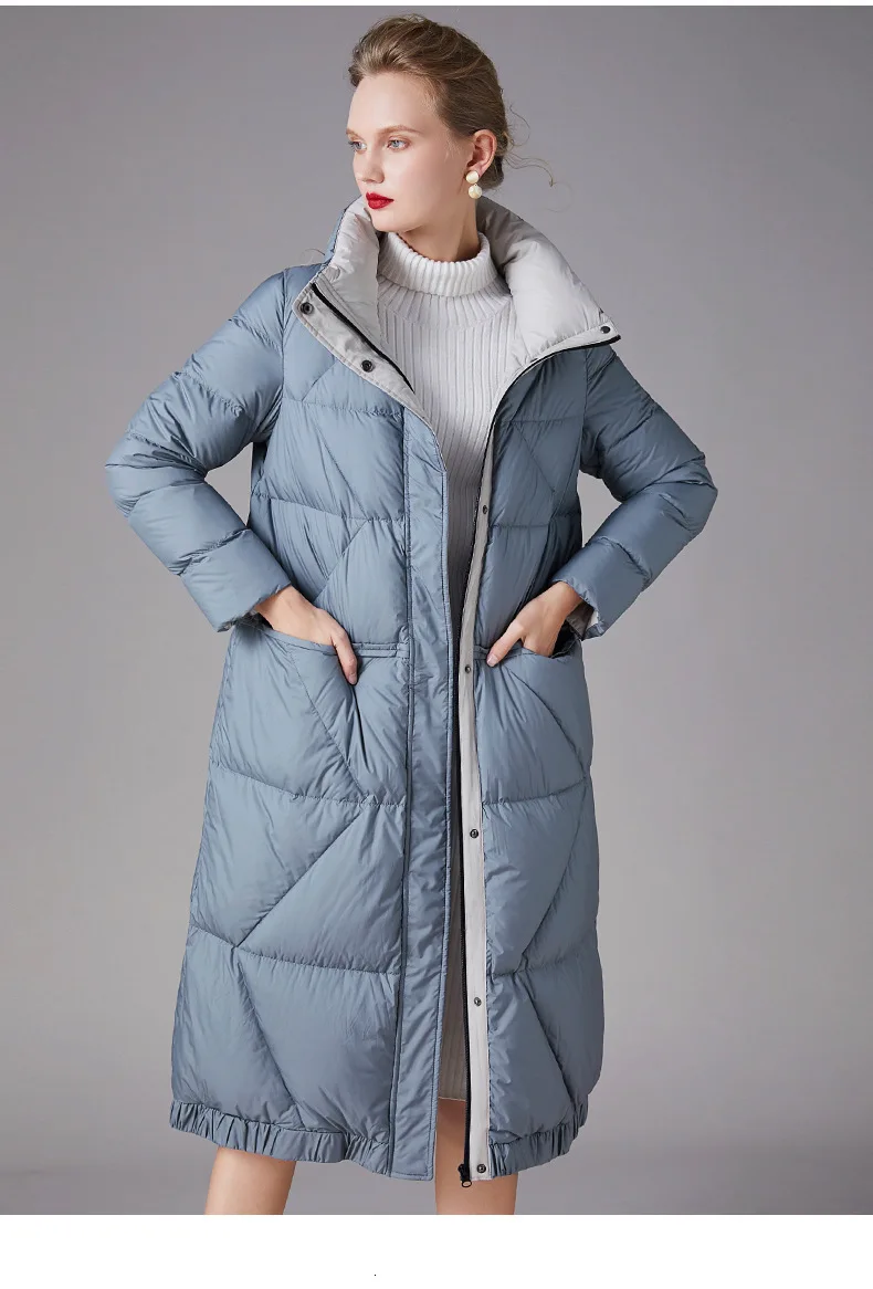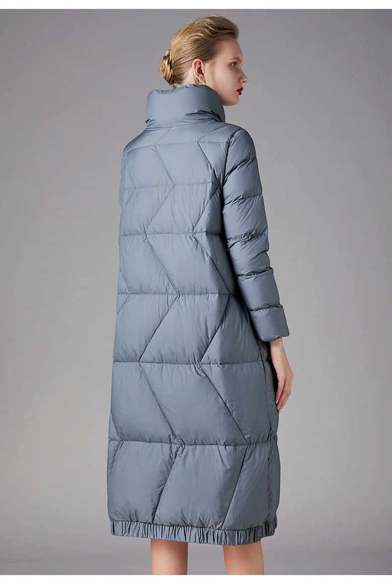 | Зимний женский пуховик, длинное утепленное пуховое пальто для девочек на 350 утином пуху, 90% г, пуховик с воротником-стойкой, 199021 Ткань: 100% ланон Наполнитель: 90% белый утиный пух | ||||||
