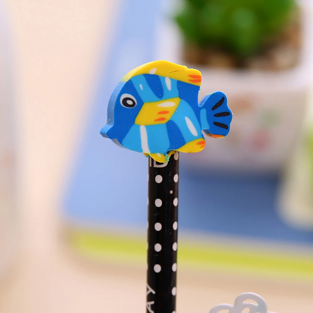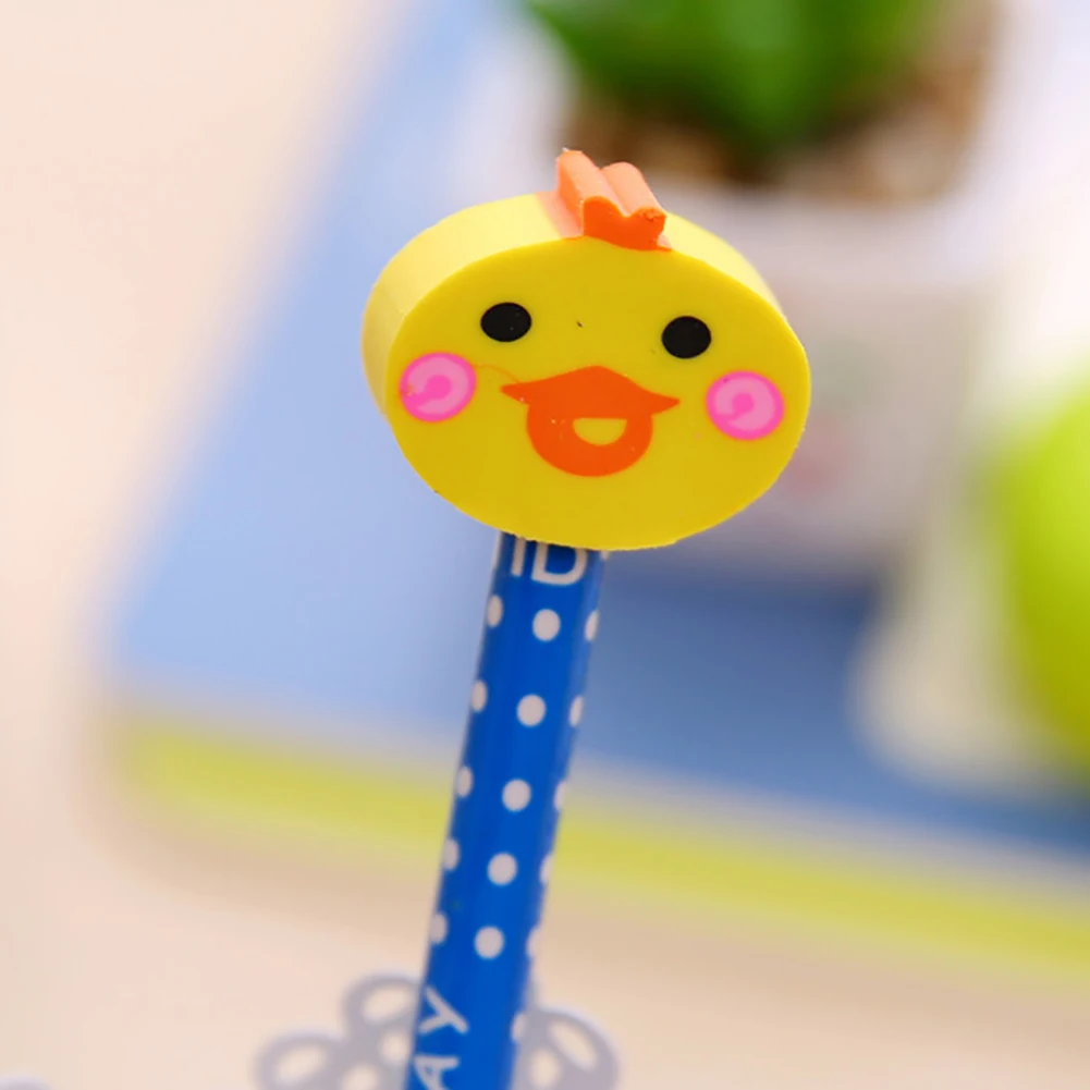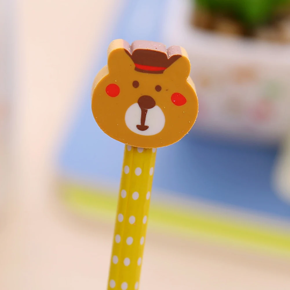Мультяшный кролик/лягушка/бабочка/цветочный узор ластик с деревянной ручкой, 2 в 1 дизайн, удобный для вас.
