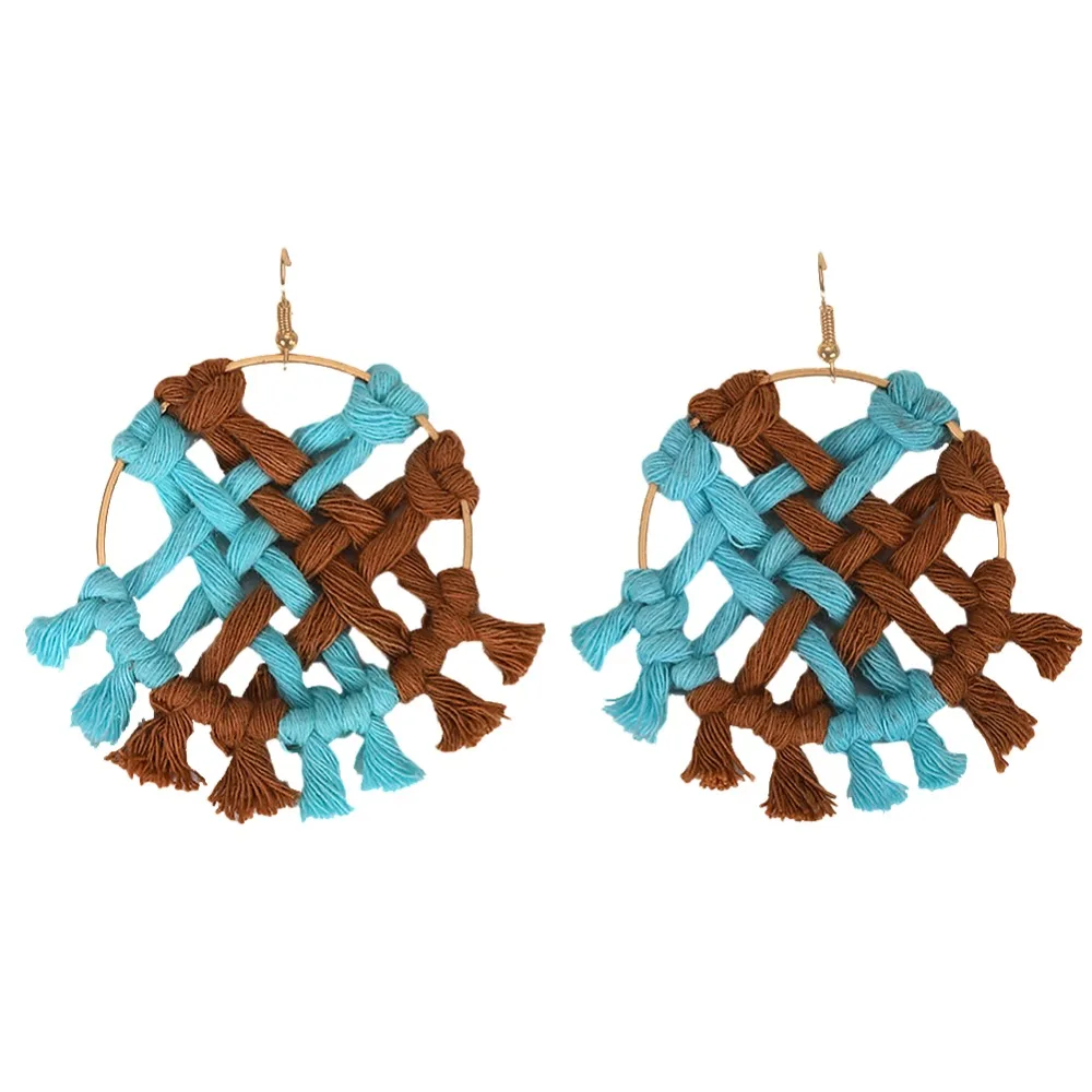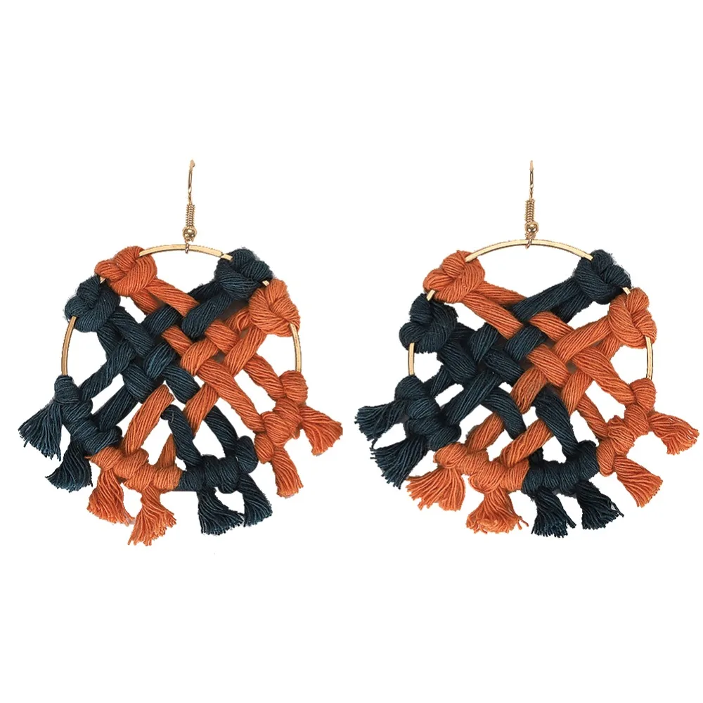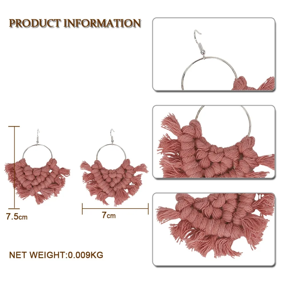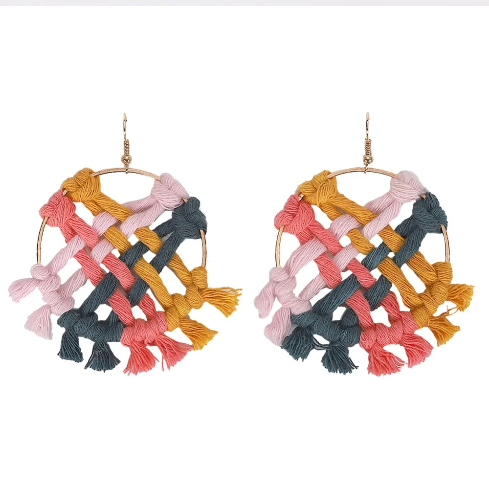 Модные красные трехярусные Серьги-кисточки с веревкой веером праздничные