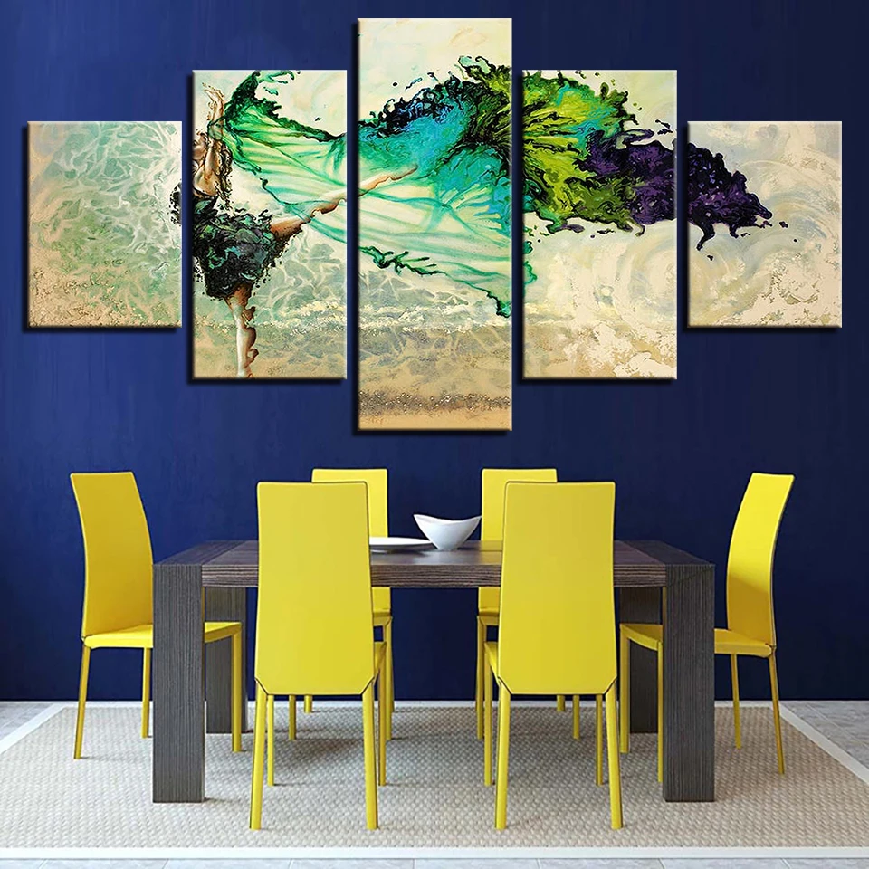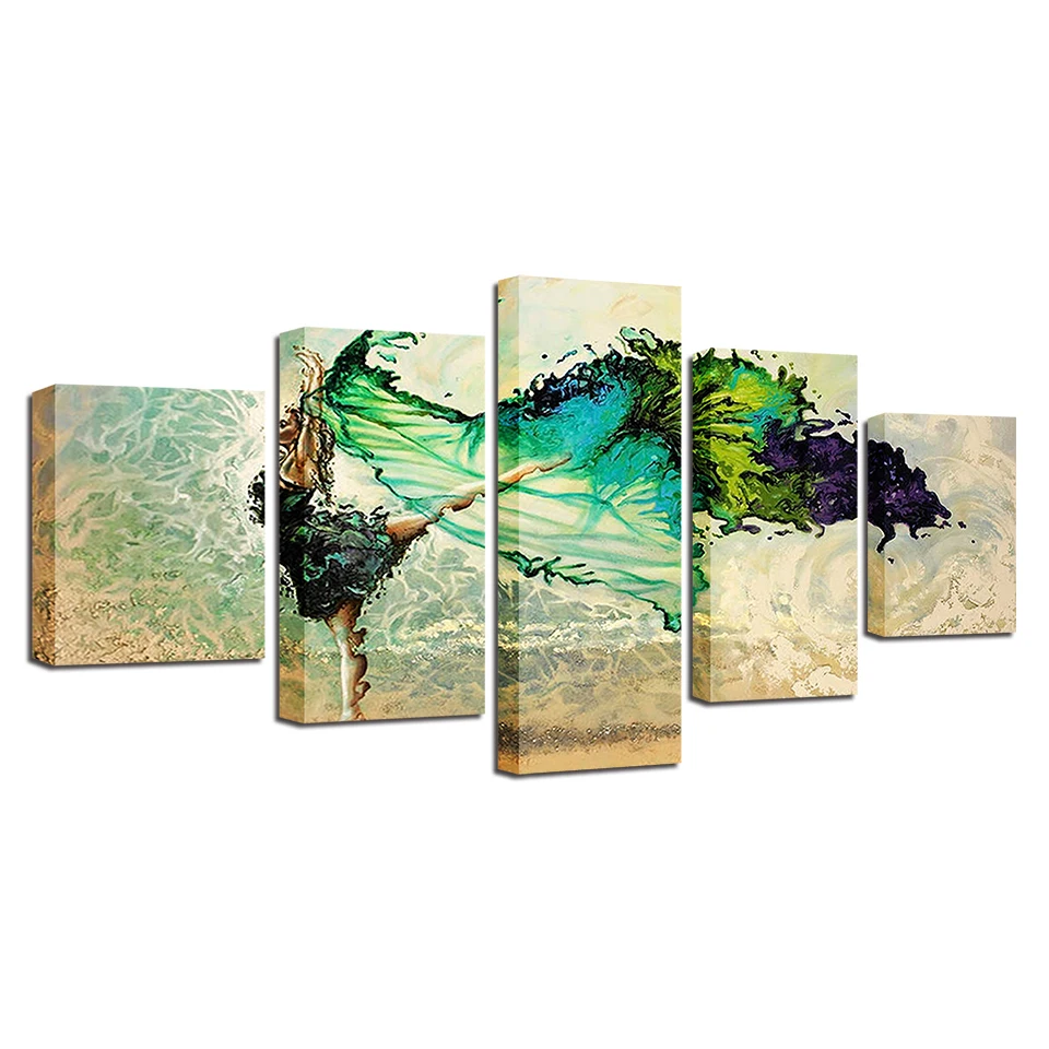Modname = ckeditorХолст настенные художественные фотографии модульный домашний Декор 5 шт. зеленые Балерины Девушка Бабочка танцевальные картины HD печать плакат рамки