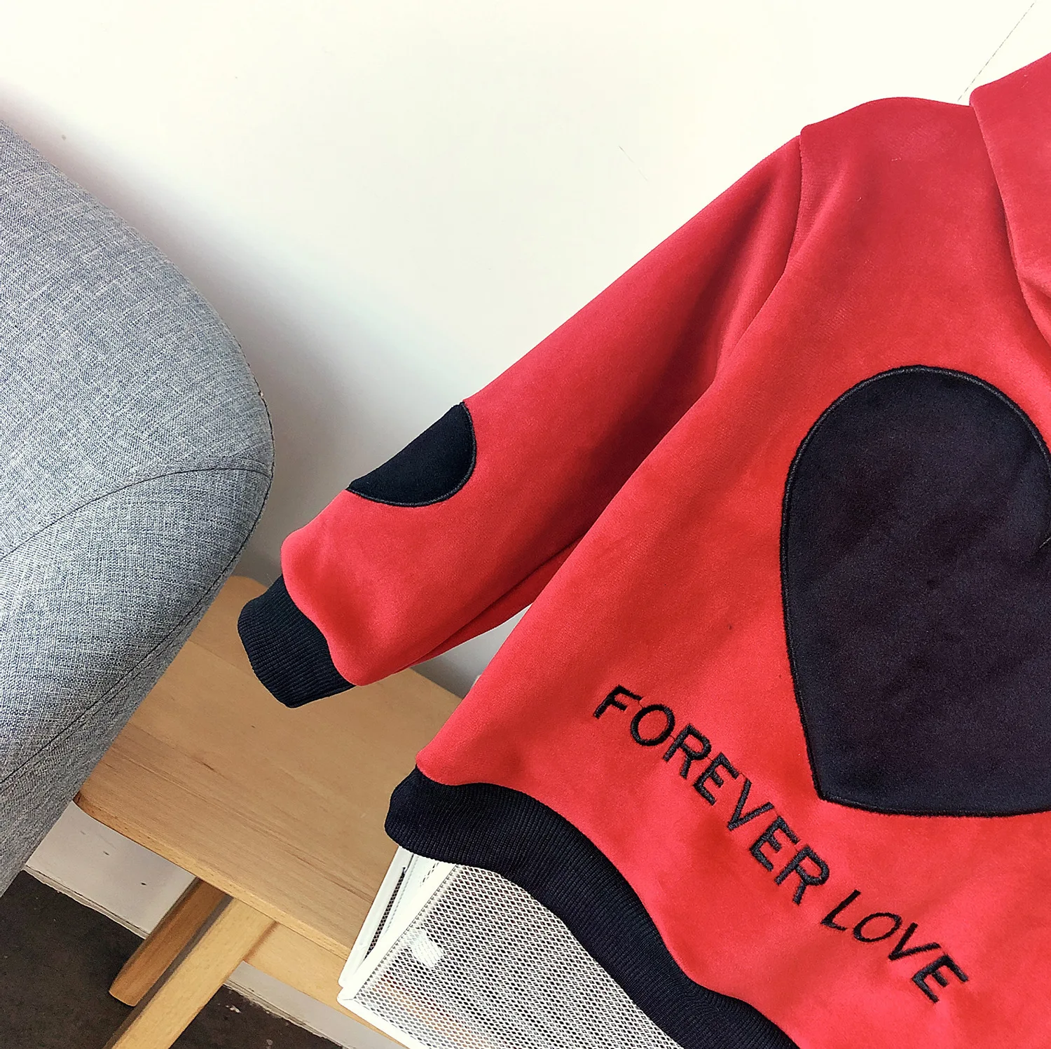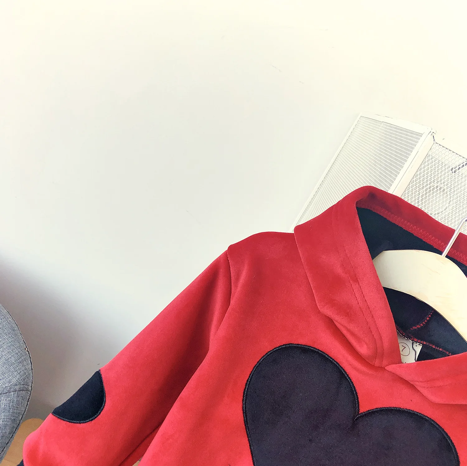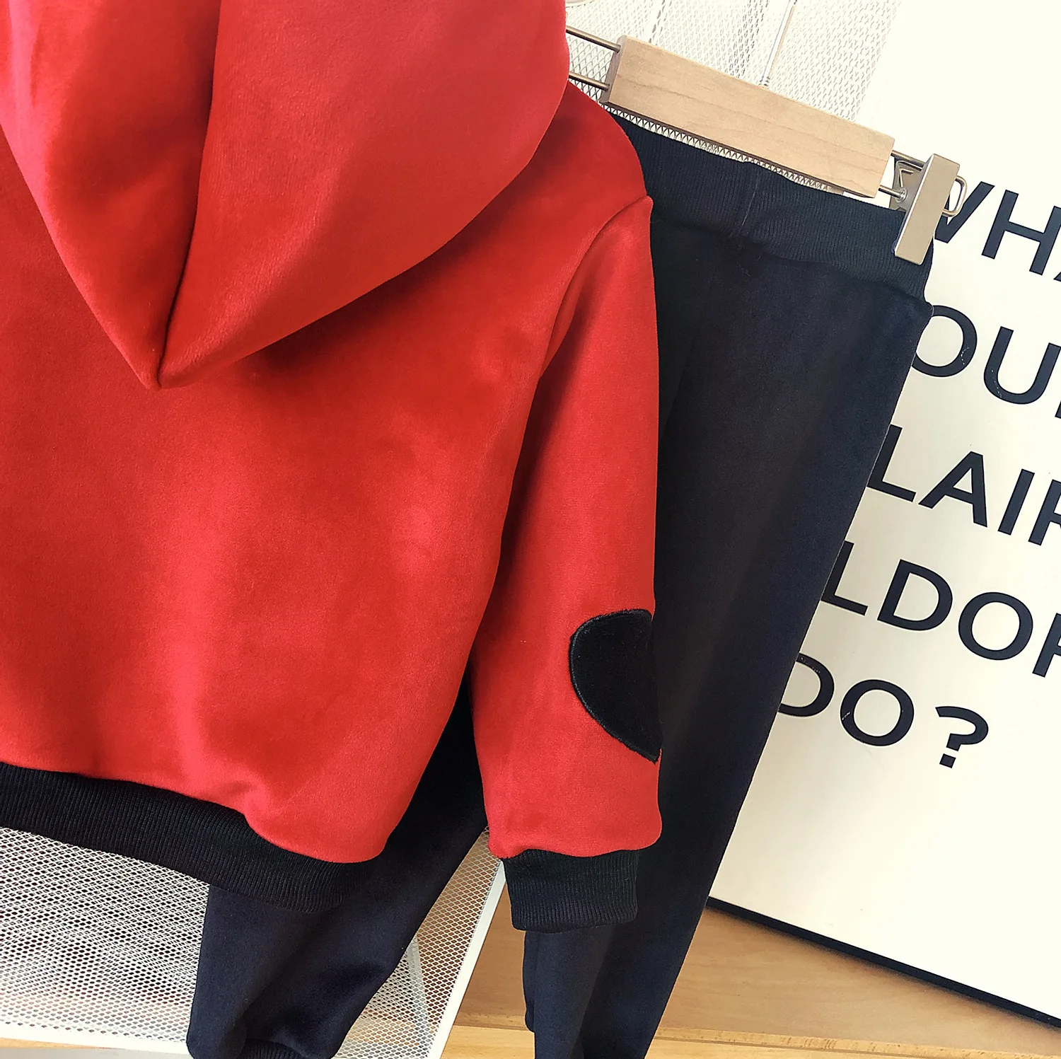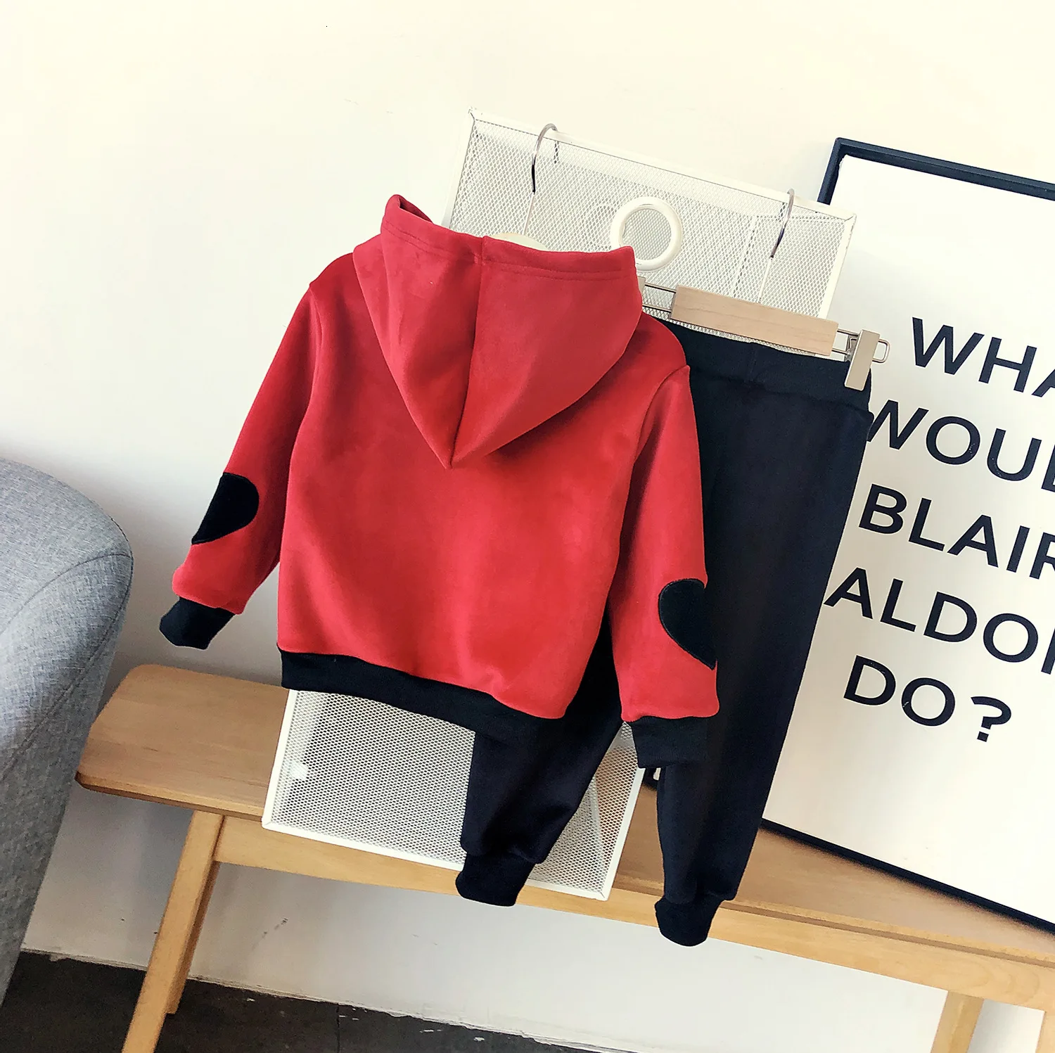 Осень-зима 2019, модный Рождественский костюм для девочек, свитер с капюшоном и длинными рукавами, штаны, комплект из 2 предметов, Теплая Флисовая одежда с сердечками для девочек