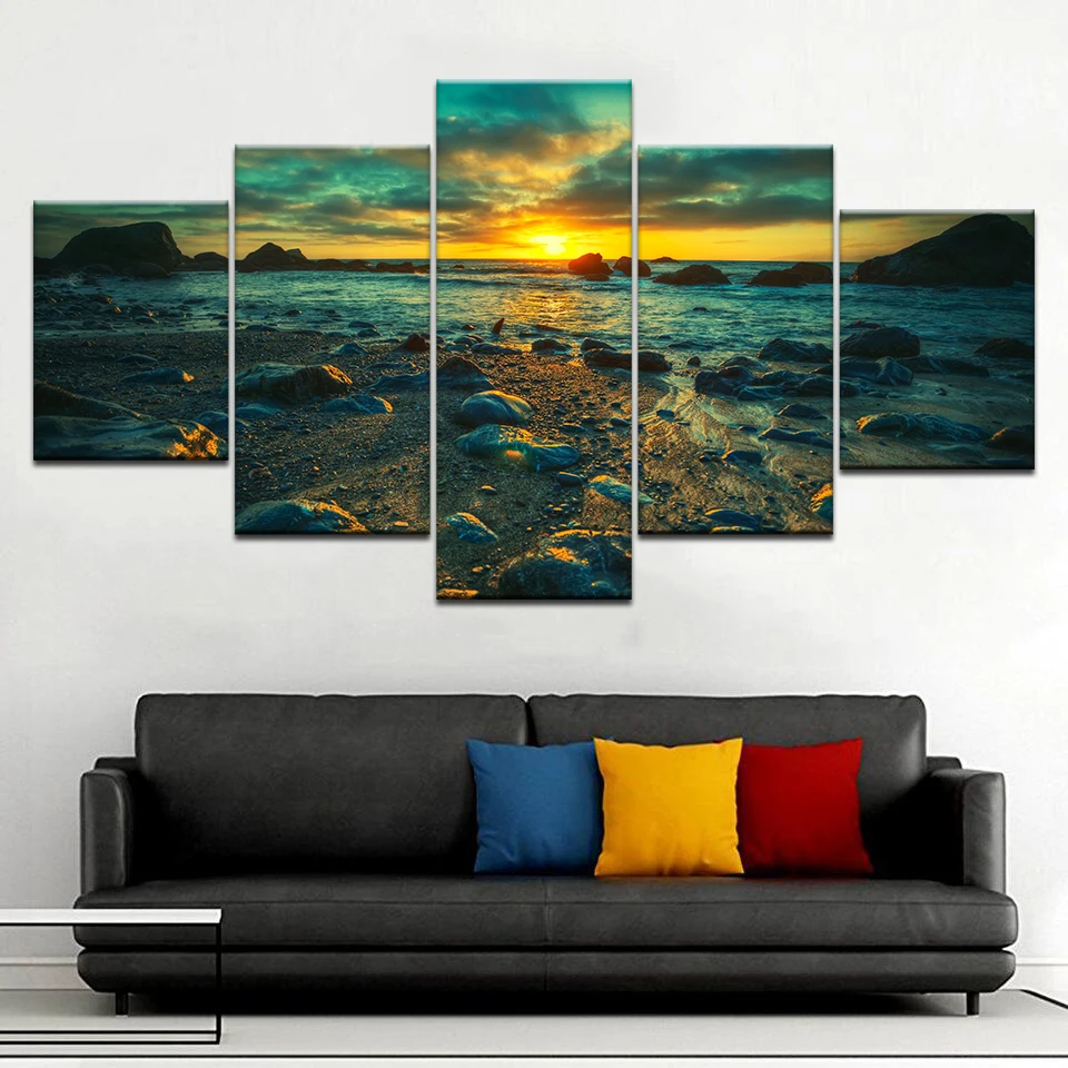 modname=ckeditor5 Pieces Modular Wall Paintings Beach Sunset Landscape Canvas Painting Print Poster Frame Decor Wall Art Modern Painting Artwork