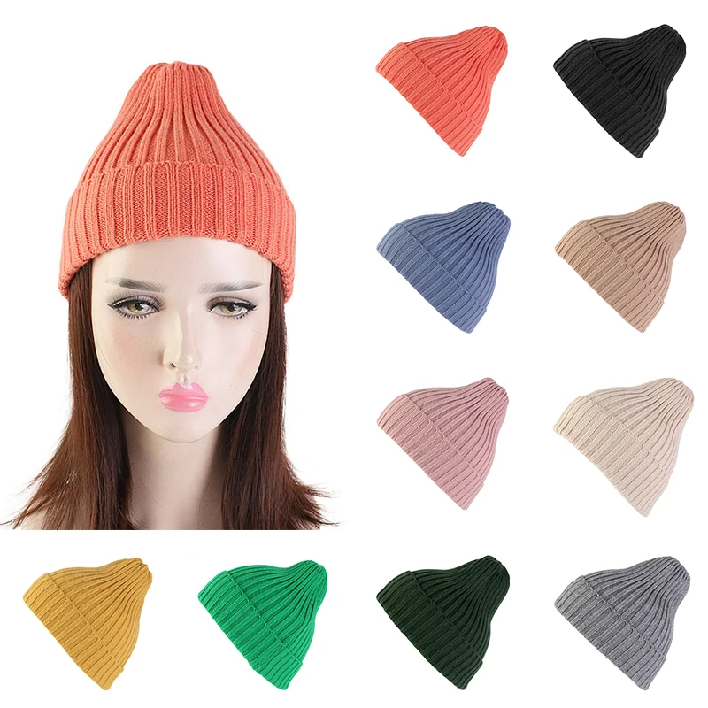 Модная женская вязаная шапка ярких цветов в стиле хип-хоп, повседневная мягкая теплая зимняя шапочка