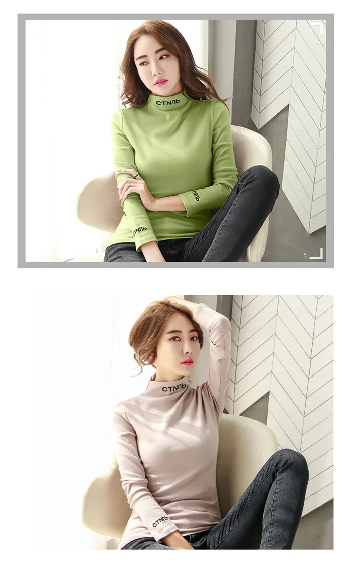 Женская водолазка с длинным рукавом JIU264, зеленая Облегающая рубашка большого размера на осень и зиму, 2019