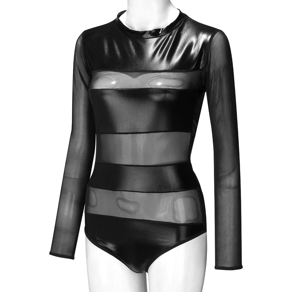 2.Эти комбинезоны соединены сеткой и искусственной кожей, мягкие и удобные, сексуальный дизайн выреза на спине