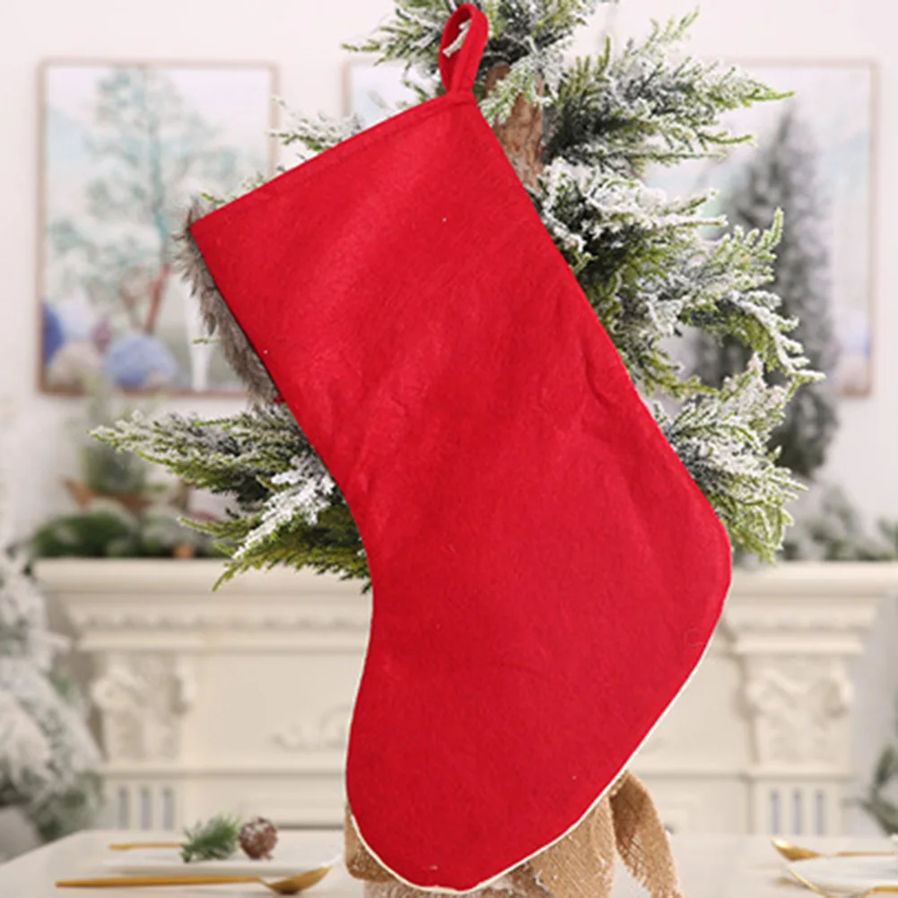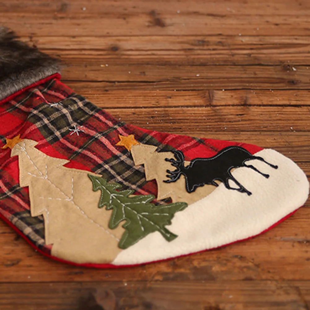 Christmas Plaid Tree Elk Print Sock Stocking Candy Gift Bag Hanging Xmas Decor
