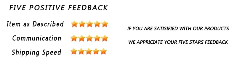 1. Положительные отзывы (5 звезд) очень важны для нас, если вы удовлетворены нашими товарами и обслуживанием, пожалуйста, оставьте 5 звезд отзывы. Пожалуйста, не открывайте спор или не оставляйте негативные отзывы, прежде чем связаться с нами, мы возьмем на себя ответственность за решение любой проблемы.