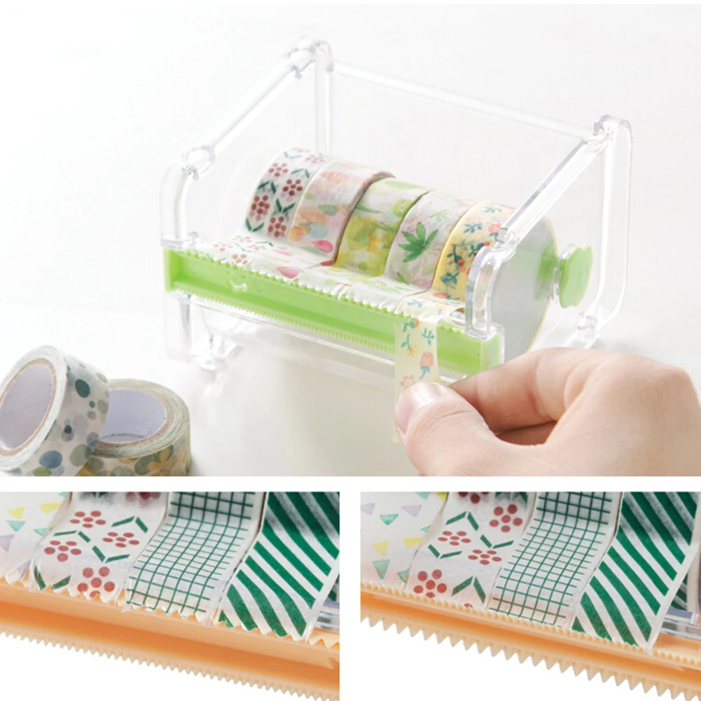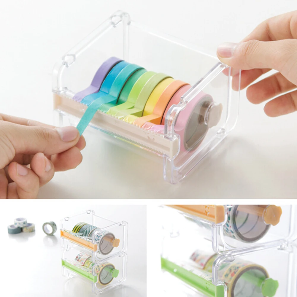 Office Stationery Adhesive Tape Holder Cutter Storage Box Organizer Dispenser