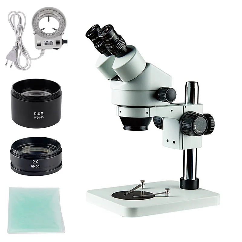Технические характеристики: Диапазон зума: 0.7x-4.5x Коэффициент масштабирования: 1:6.4 Общее увеличение: 3.5X-90X (с объективом 0.5X и 2X можно расширить до 3.5X-90X) Рабочее расстояние: 100 мм (стандарт) Расстояние между отверстиями: 54-76 мм Диоптрия Регулировка: +/-5 диоптрий Бинокулярная трубка: с наклоном 45 ° для большей простоты наблюдения Бинокулярный Корпус: может поворачиваться на 360 градусов и блокироваться в любом желаемом положении. B1 Полюс стенд Вертикальный столб: 240 мм Диаметр: 32 мм Базовый размер: 200*255*22 мм С 95 мм черный/белый пластик Пластины и парные зажимы с использованием С A1 фокусировки держателя Вес: около 8 кг Светодиодный светильник-кольцо Источник: Номер модели: LEDHXD001 Цвет: белый Напряжение: 220V Размеры: 100 мм Мощность: 5 Вт Световой поток: 60000LM Защита Класс: IP40 Цветовая температура: 6500-7000K Тип: специальная светодиодная кольцевая лампа микроскопа Материал: Пластик Вес брутто: 250 г Внешний диаметр: 95 см Внутренний диаметр: 63 см Светильник интенсивности adjustment0-100 %, цвет без изменения интенсивности регулировки, без вспышки электричества, входная мощность: AC90-260V Упаковочный лист: 7X-45X бинокулярный зум стерео микроскоп * 1 Крышка для защиты от пыли-1 шт Руководство пользователя-1 шт Светодиодный кольцевой светильник * 1 0.5X объектив * 1 2X объективный объектив * 1