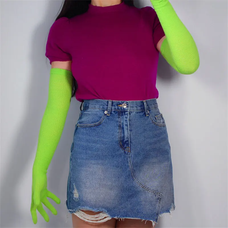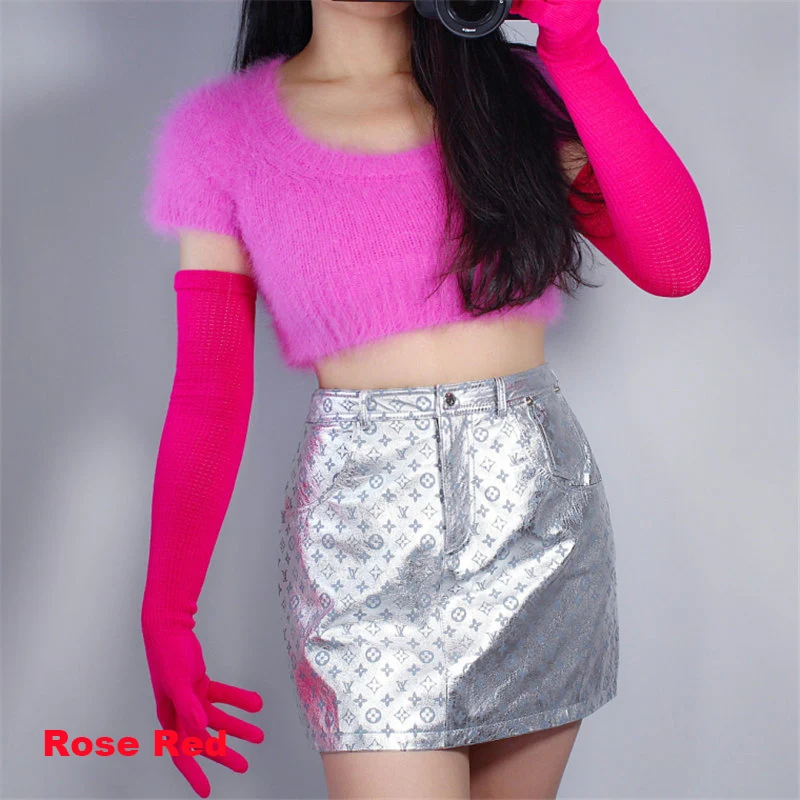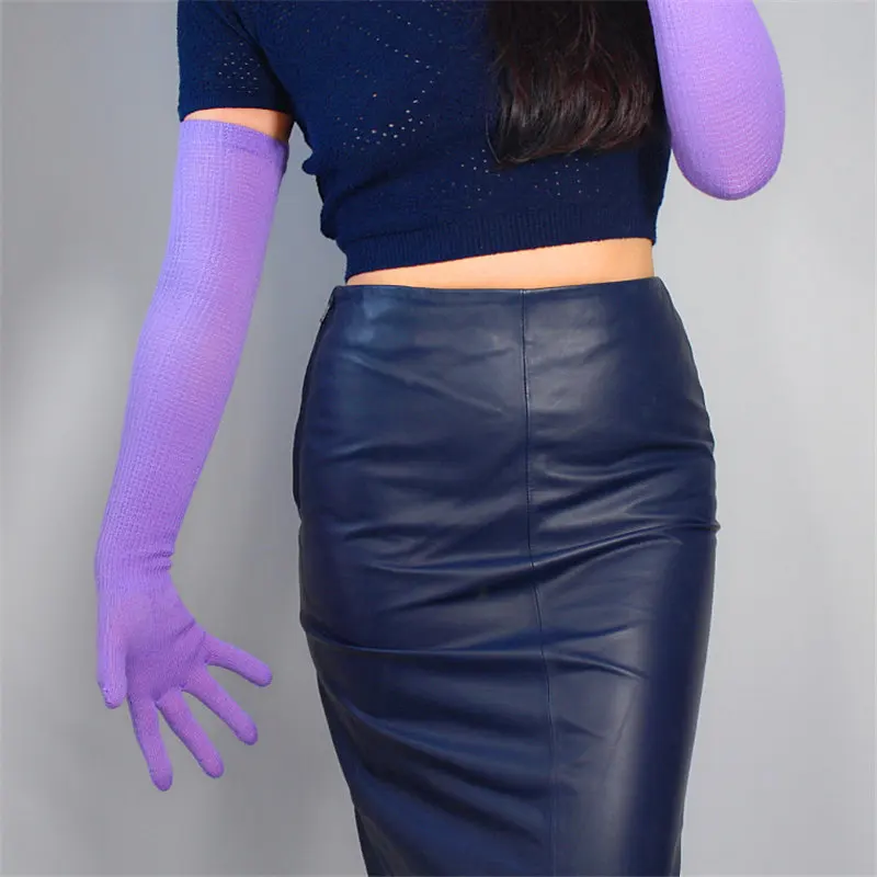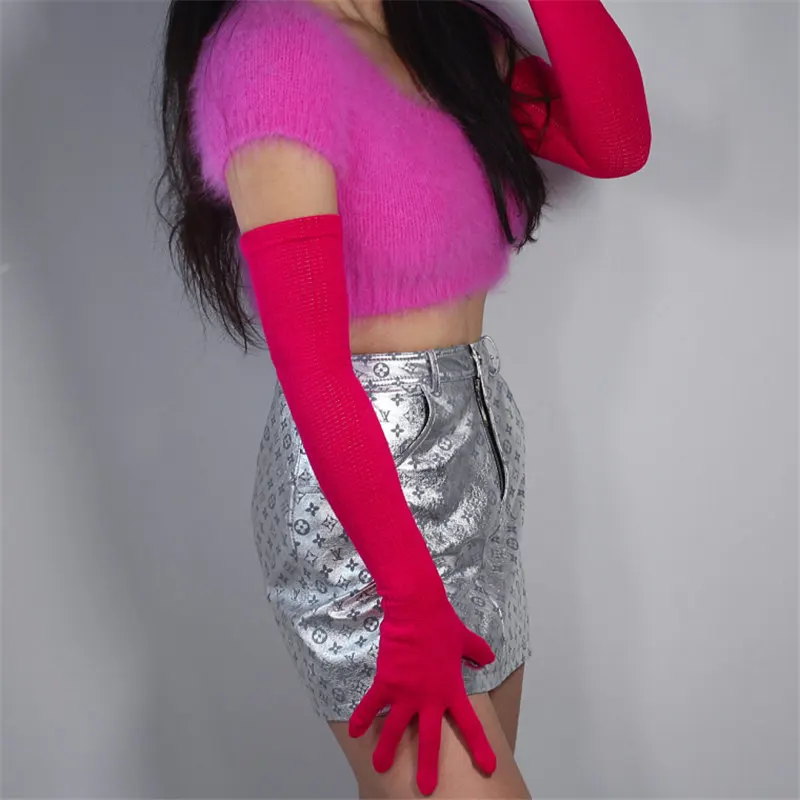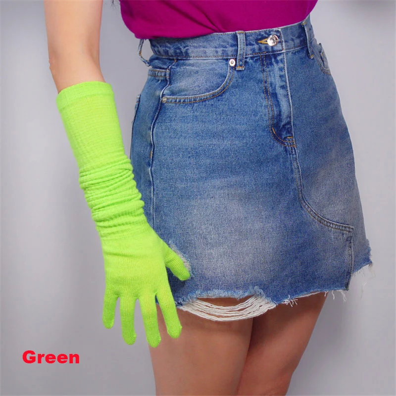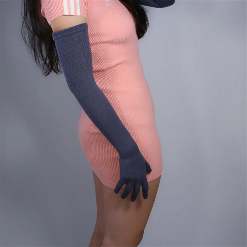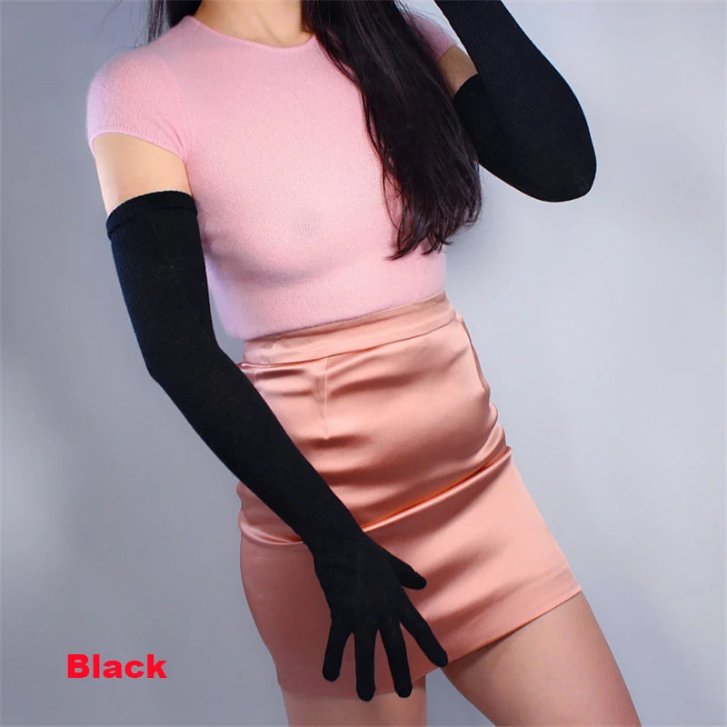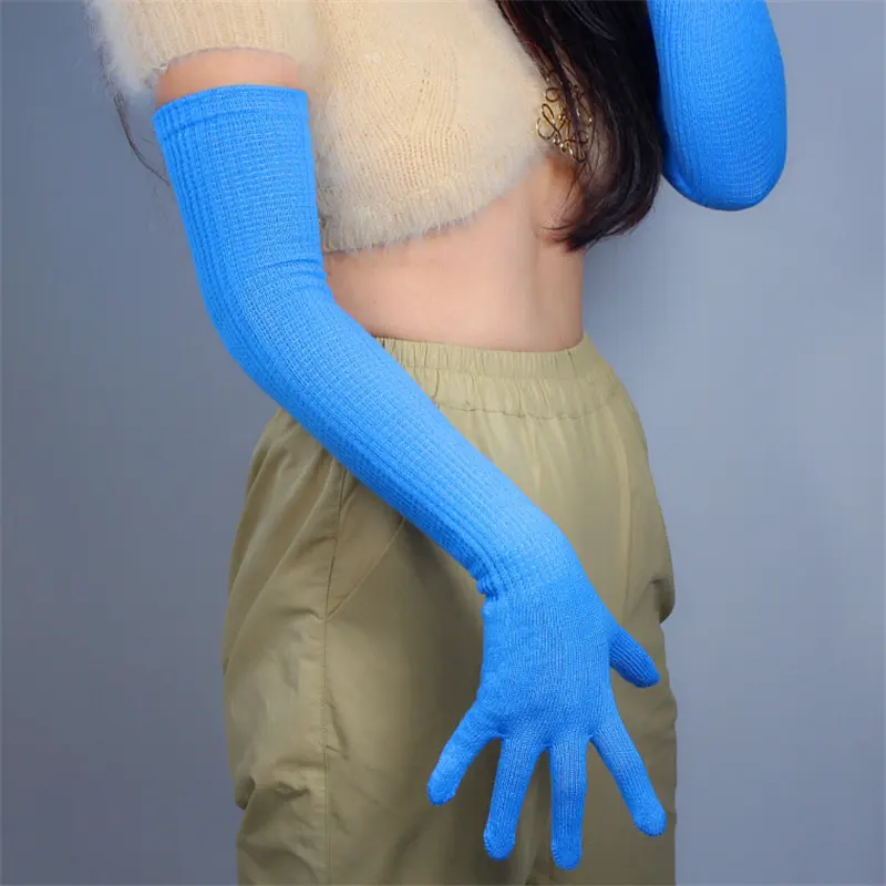 Модные длинные шерстяные перчатки 55 см Вязание пять пальцев высокая эластичность шерсть Женские авокадо зеленые S00235-10