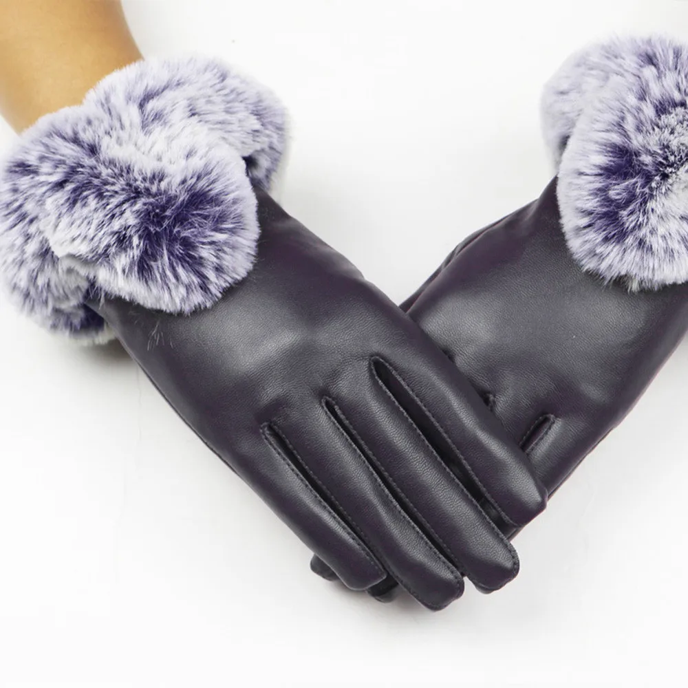 1 Для женщин кожаные перчатки на осень С настоящим мехомТеплые варежки из кроличьего меха