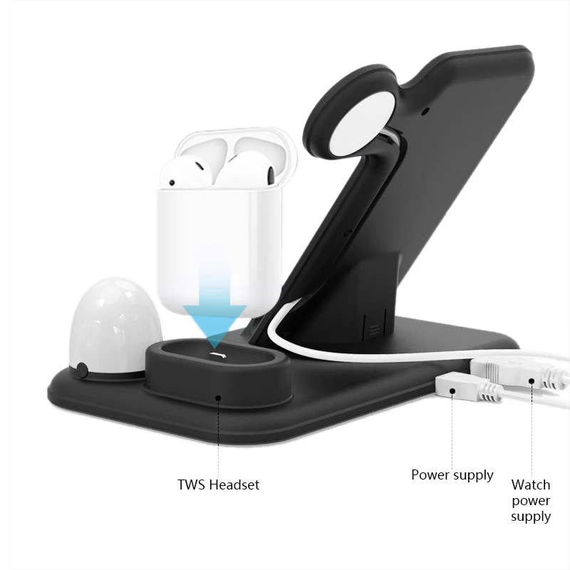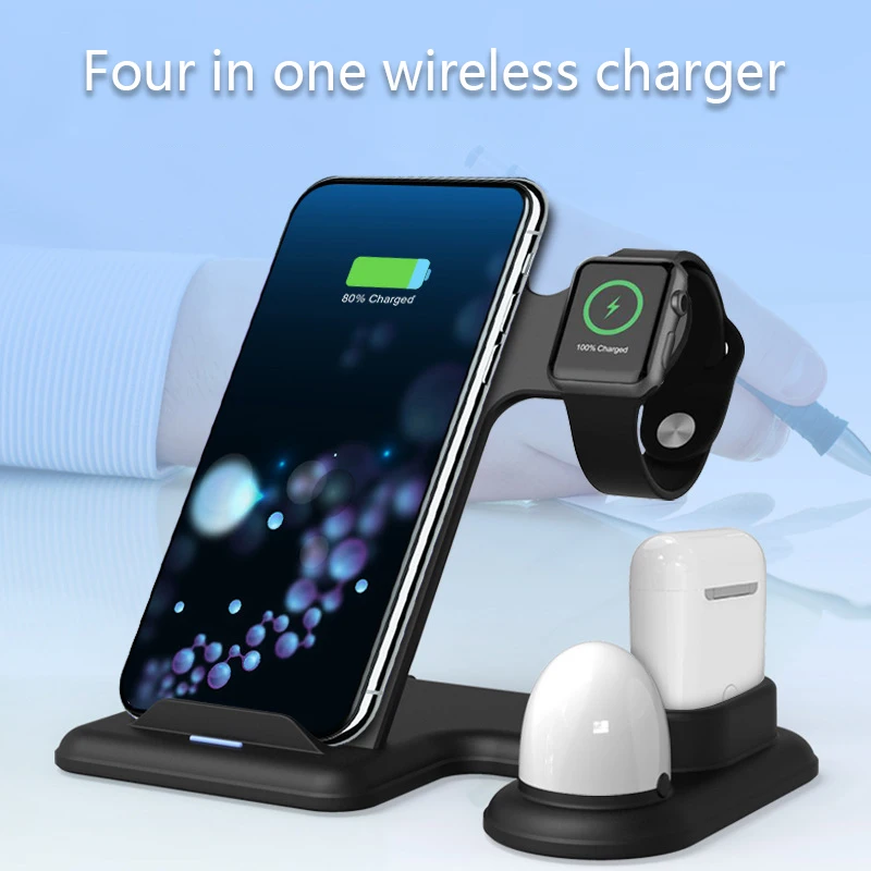 4 в 1 Qi Быстрое беспроводное зарядное устройство для iPhone 11 Pro Max Зарядное устройство Док-станция для Apple Watch iWatch 1 2 3 4 5 для Airpods держатель для телефона со светодиодной подсветкой