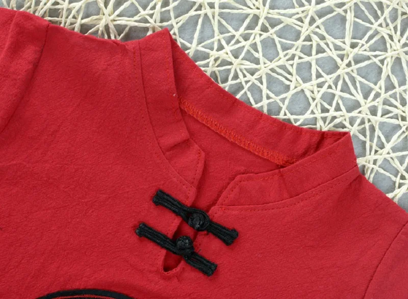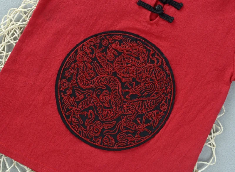 Традиционная Футболка с вышивкой для маленьких мальчиков и девочек в китайском стиле с красным драконом топы + шорты, комплект одежды, bebes