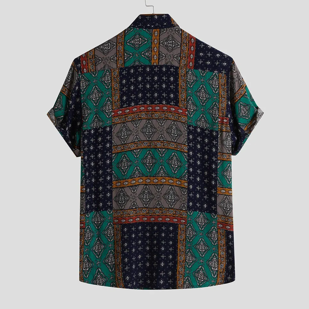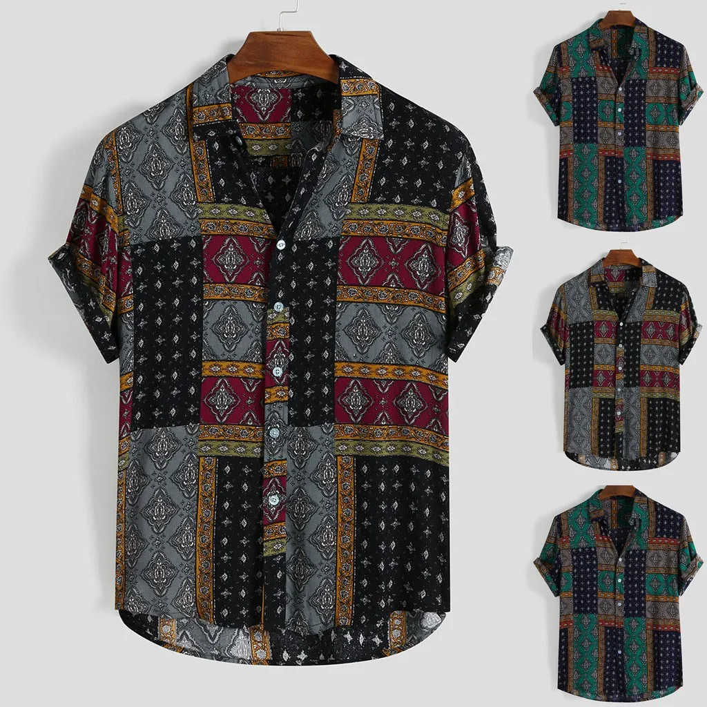 Мужская летняя рубашка в этническом стиле с коротким рукавом, Свободная Повседневная рубашка с пуговицами, топы Особенности: 1. Он изготовлен из высококачественных материалов, достаточно прочный для ежедневной носки 2. Идеально сочетается с вашими любимыми шортами и т. д. 3. Отлично подходит для вечерние, повседневные, пляжные, я уверен, вам понравится! 4. Носить его сделает вас более красивым Информация о продукте: Сезон: все сезоны Область применения: Повседневное, на каждый день Материал: искусственный шелк Длина рукава: короткий рукав Стиль: Модный, повседневный Размер: Соответствует размеру Как стирать: Ручная стирка в холодной воде, подвешивание или сушка Что вы получаете: 1 шт. мужская рубашкаПол: для мужчин