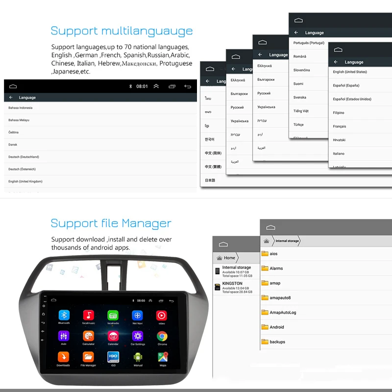 Suzuki S-CROSS 2014-2017 мультимедийный плеер для автомобиля развлечения Android 8,1 четырехъядерный GPS универсальный GPS Радио стерео аудио плеер Suzuki S-CROSS 2014-20171024x600 характеристики: четырехъядерный 2. Операционная система Android 8,1 (последняя версия) 3. Встроенный RDS 4, встроенный 1G RAM и 16G ROM 5, встроенный 2USB вход программного обеспечения ресурсы Операционная система: Android 8,1 Размер экрана: 9 дюймов ЦП: 1,5 ГГц четырехъядерный вход питания: 4*60 Вт. ОЗУ: 16 Гб разрешение: 1024*600 экран: емкостный сенсорный экран WiFi: Поддержка USB слота; Поддержка GPS: поддержка функции: 1. Разрешение 1024*600: обеспечивает высокое качество изображения. 2. Поддержка встроенных динамиков. Микрофон. Bluetooth. Руль обеспечивает безопасное вождение. 3. Языковое меню: английский, русский, многоязычный. 4. Поддержка DVR, задней камеры, функции OBD. 5. Используйте эквалайзер для улучшения качества звука. Используйте EQ для регулировки звука для достижения наилучших результатов. 6. Программа поиска Blurtooth "a to Z" 7. Поддержка функции Bluetooth hands-free, встроенный микрофон 8. Главное меню «сделай сам»: вы можете перетаскивать Панель поиска, weather forecast widget, music/radio/BT-StereoPlayer, приложение или другие избранные для отображения в главном меню. 9. Встроенные часы и календарь, он имеет часы в реальном времени для отображения времени, часы/дата/неделя регулируется. 10. Встроенный Wi-Fi ключ, Поддержка стандарта 802.11b / g / n WLAN, высокая производительность, низкое энергопотребление радио тюнер, 30 радиостанций (FM: 3*6) 11. Поддержка онлайн-навигации Google Maps, если вы находитесь в Интернете, вы можете использовать GPS для просмотра 12. Поддержка мультимедийного плеера Android, может воспроизводить музыку/Фильмы/фотографии на локальном диско или подключенную tf-карту. Онлайн развлечения, онлайн видео поддержка, ТВ, фильмы, музыка, радио, Youtube, Yahoo, MSN... 13. Вы можете воспроизводить стерео музыку через Bluetooth на вашем телефоне.
