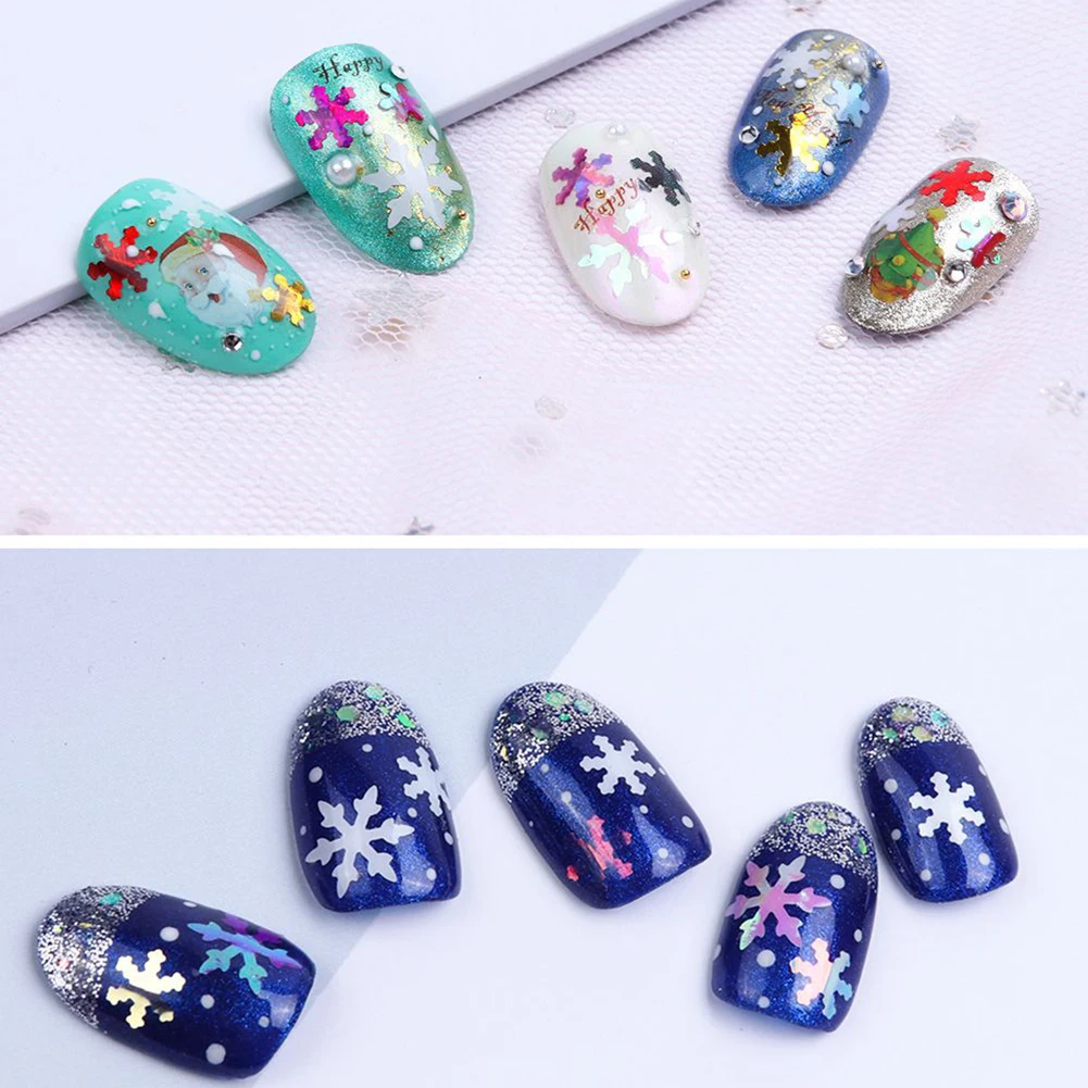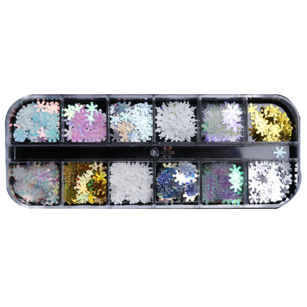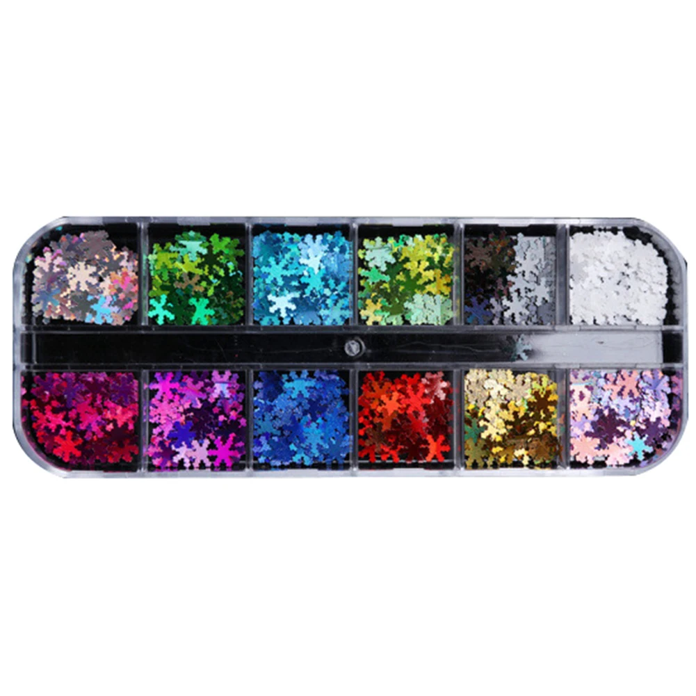 Рождественский Декор 12 Сетки Многоцветный 3D блестящая Снежинка Блестки для нейл Арта (искусство украшения ногтей) хлопья