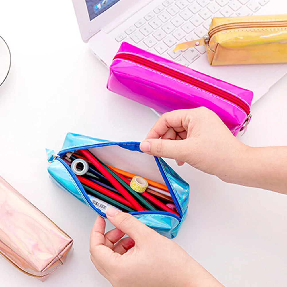 Светоотражающая Лазерная Коробка для ручек и карандашей чехол канцелярские сумки на молнии органайзер для хранения