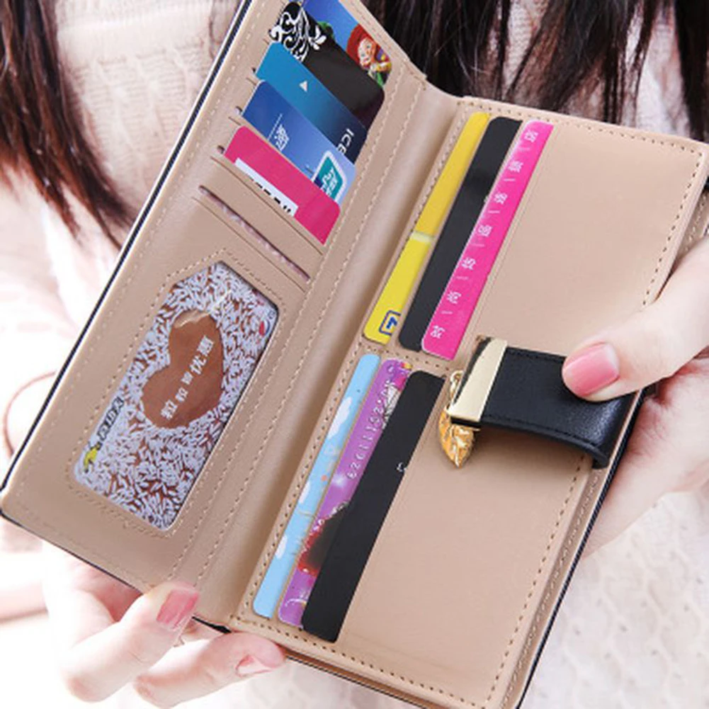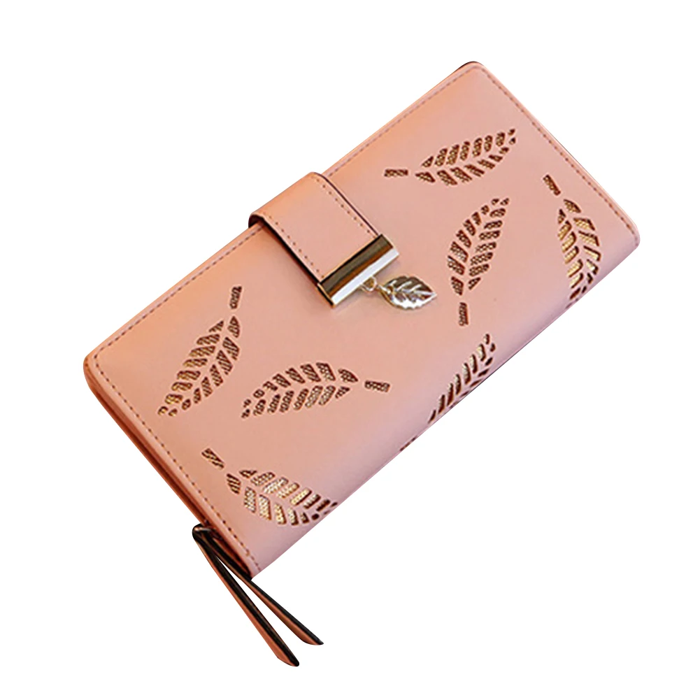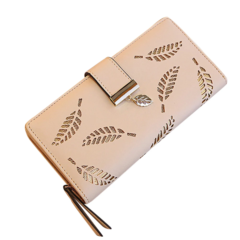 Модный женский кошелек с полым листом для карт, Длинный кошелек на молнии с пряжкой, клатчи, сумка
