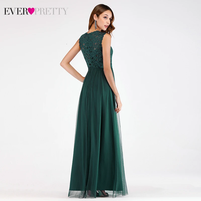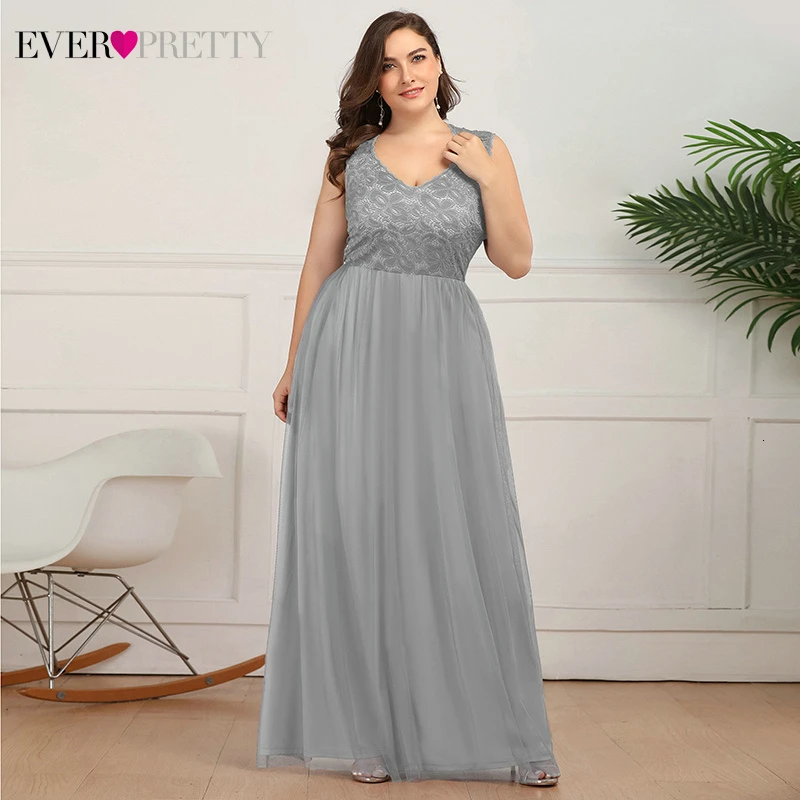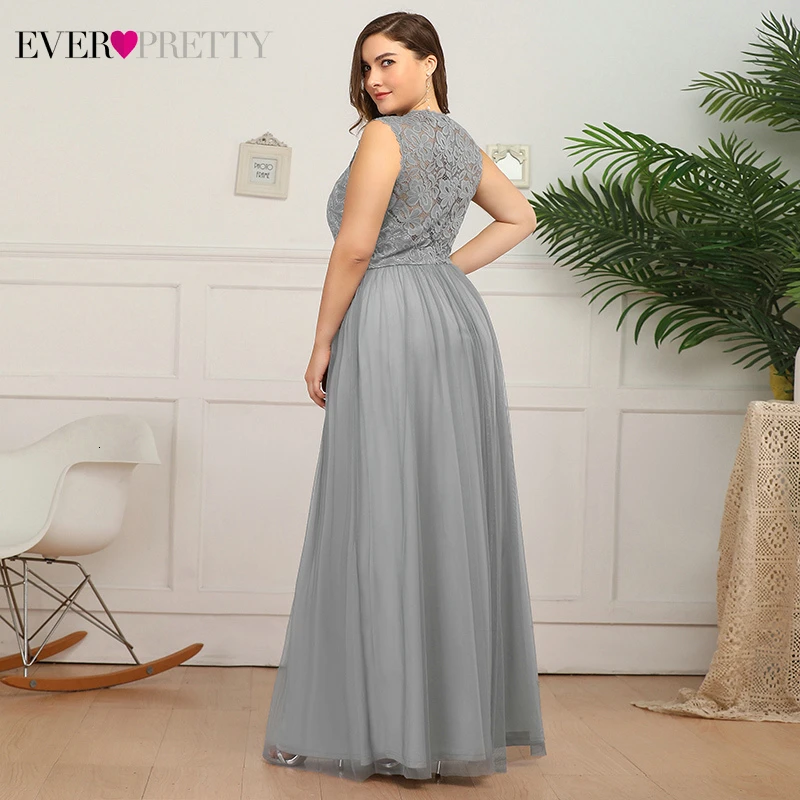 Plus Size Floral Lace Evening Dresses Ever Pretty A-Line V-Neck Sleeveless Tulle Elegant Long Party Gowns Vestido De Festa 2019