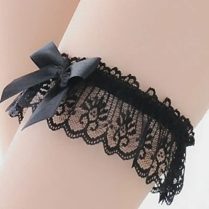 Сексуальная Ажурная Цветочная кружевная эластичная Свадебная подвязка, с однотонным бантом из ленты, эластичная и тонкая.