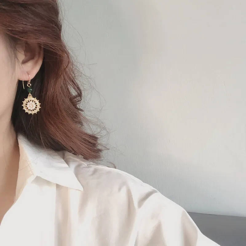 Винтаж золотой круглый цветок висячие серьги свадебные жемчужные серьги цветы для женщин Enagermant Ювелирные изделия Подарки