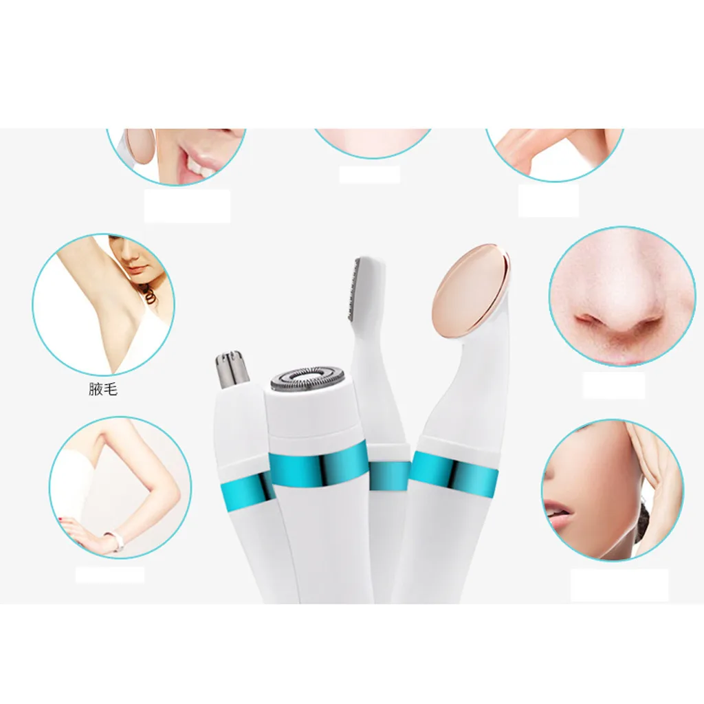 Женский Электрический эпилятор 4 в 1, электробритва для волос, электрический триммер для удаления, Водонепроницаемая бритва для бикини, области носа, подмышек, ног