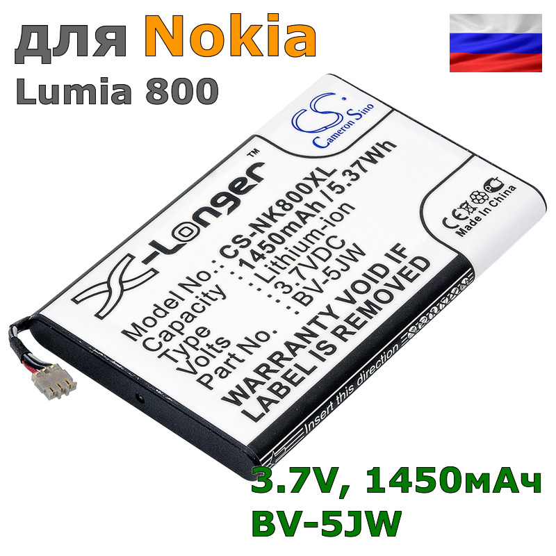 Подходит для Nokia Lumia 800Также подходит для мобильного телефона: 800, Sea Ray, Lumia 800C, N9, N9-00Подходит для замены аккумуляторов с номерами (partNo): BV-5JW, а также CS-NK800XL