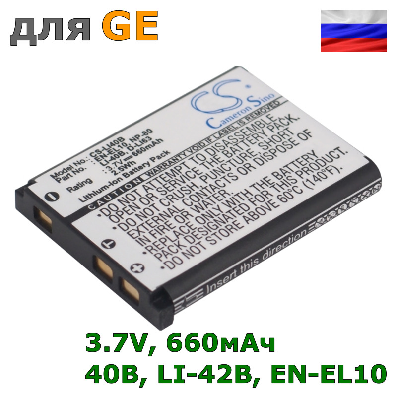 Аккумулятор 40B EN-EL10 LI-42B LI-40B NP-80 GB-10 D-LI63 02491-0053-00 BL-40B-500 SL7014 BL-40B для GE 660mAh - купить по