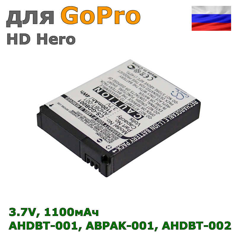 Подходит для GoPro HD HeroТакже подходит для камеры: Hero, HD Hero 2, Hero 2 HD2-14, HD Helmet Hero, HD Hero 960, HD Motorsports Hero, HD Surf Hero, Hero HD 1080p Digital Cameras, а также подходит для некоторых других моделей, не перечисленных в этом списке.Подходит для замены аккумуляторов с номерами (partNo): AHDBT-001, ABPAK-001, AHDBT-002, а также K1S, KB-08, CS-GDB001