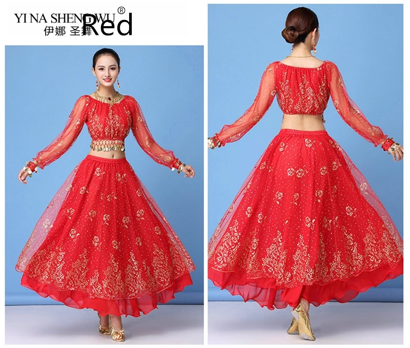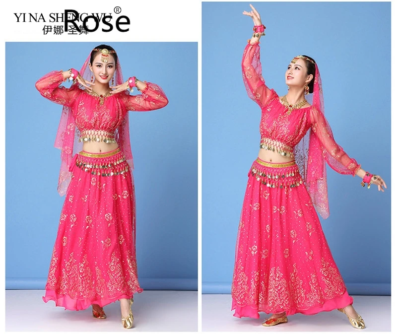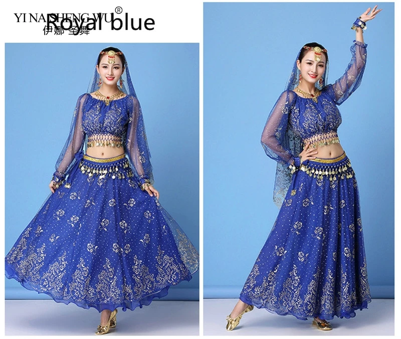 Женское платье В Стиле Болливуда, индийское танцевальное сари, наряд для танца живота, одежда для выступлений, шифоновый топ + юбка + поясная цепочка, 8 шт.