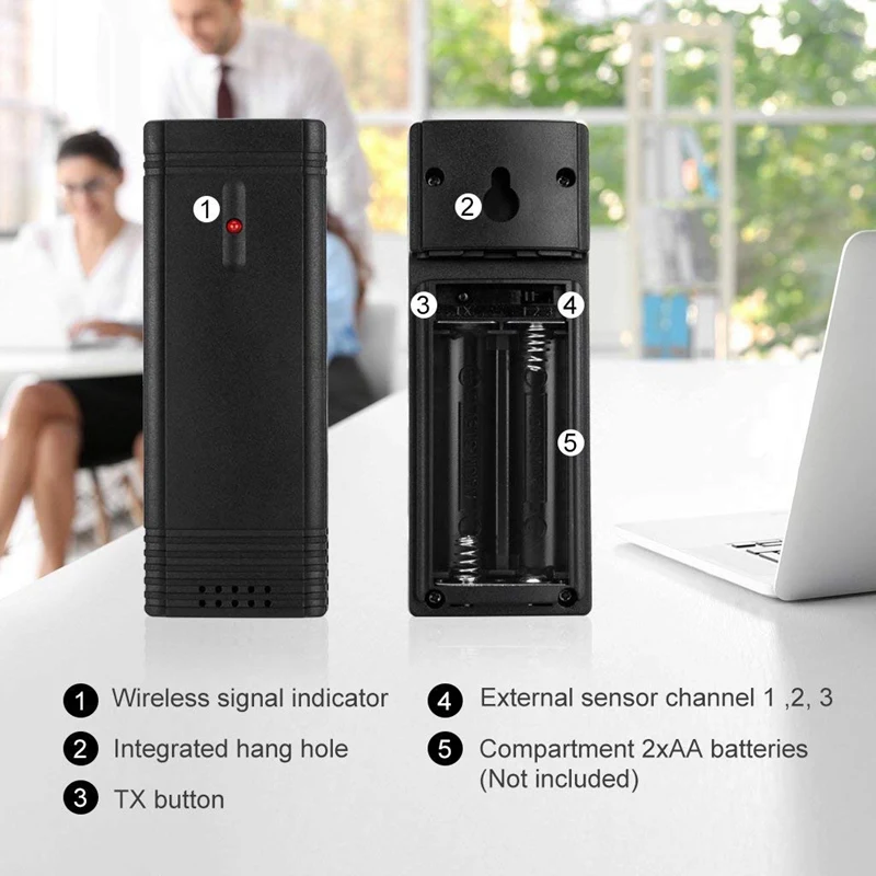 Высокая Универсальность и точность: Беспроводная метеостанция проста в использовании и точна в измерении. Он служит термометром, гигрометром, барометром и будильником, обеспечивая максимально точный предсказание. Кроме того, дисплей автоматически начинает принимать передачу от наружного датчика после включения питания. Кроме того, вы также можете повесить датчик на стену или поставить его в базовом положении подставки, удовлетворяющем ваши потребности.