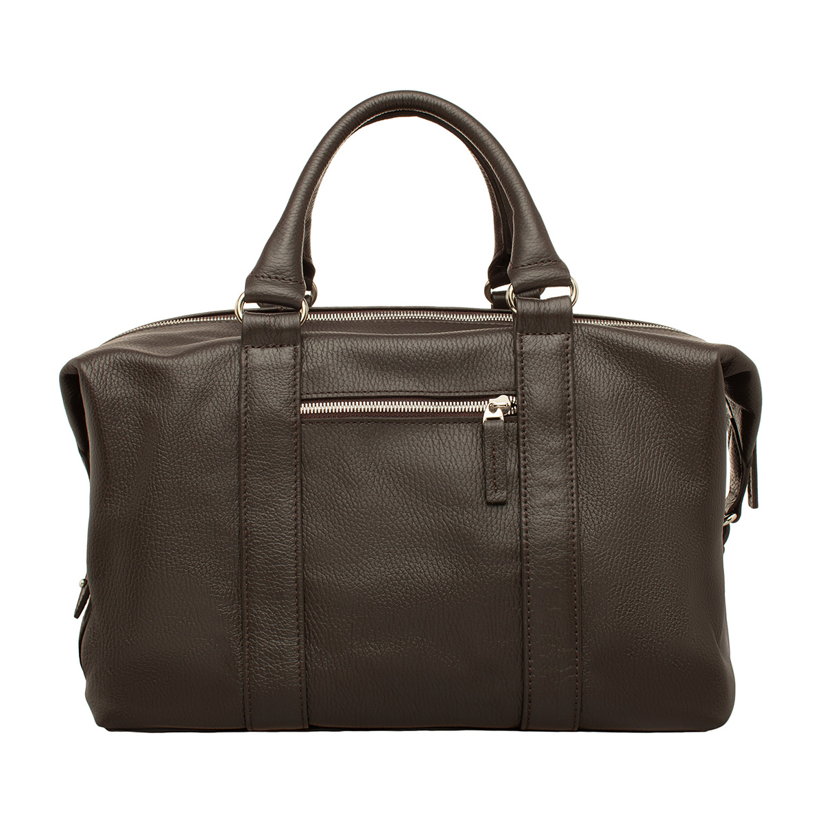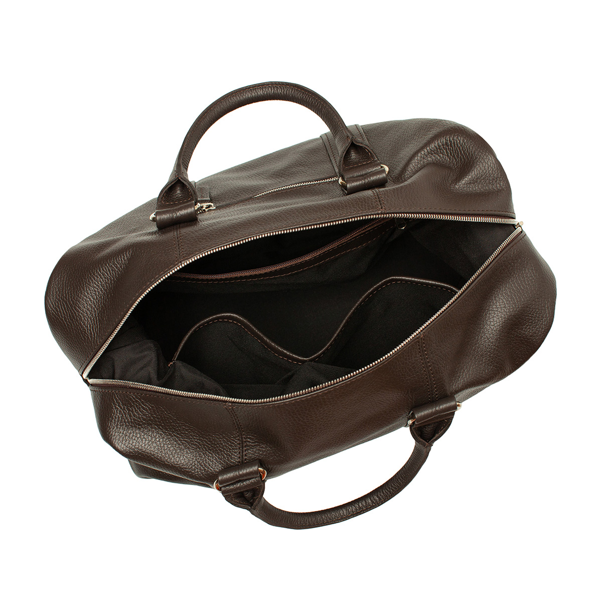 <p>Кожаная спортивная сумка Calcott Brown характеризуется лаконичным стилем исполнения. Благородный коричневый цвет удачно дополняется серебристым блеском фурнитуры. Носка будет максимально удобной за счет комфортных ручек анатомического типа. Они изготавливаются из кожи натурального происхождения, как и сама модель. Производитель предусмотрел наличие плечевого ремня, который можно легко регулировать при необходимости. Внутреннее отделение с усиленным дном очень вместительное. Там вы найдете 2 открытых кармана и 1 на молнии. Снаружи также имеется отделение для хранения важных мелочей. </p>