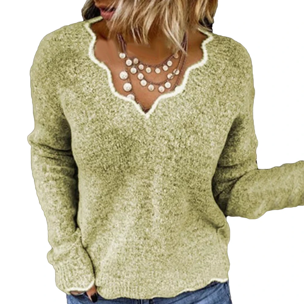 2019 свитер с длинным рукавом сплошной цвет v-образный вырез сексуальный свободный